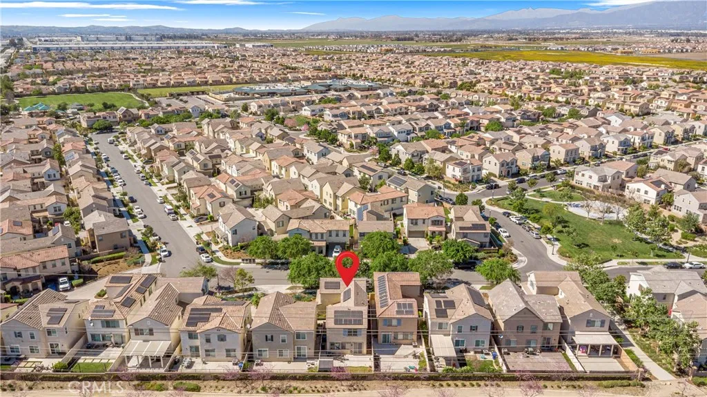 Welcome to 4961 Monarch Place, one of the most desirable homes in the Park Place master planned community in Ontario Ranch. This beautifully maintained residence offers 4 bedrooms and 3 bathrooms with approximately 2,299 square feet of bright and open living space. The spacious great room and dining area create an ideal setting for entertaining, while the gourmet kitchen features timeless white cabinetry, a vintage inspired art deco tile backsplash, quartz countertops, stainless steel appliances, and an oversized island. The first floor includes a convenient bedroom and full bathroom, perfect for guests or multi-generational living. Upstairs offers a dedicated laundry room, a spacious loft ideal for a home office or flex space, and a private primary suite with a walk-in closet and an en suite bathroom featuring a soaking tub, separate shower, and dual vanities. Additional highlights include recessed lighting, custom interior paint, and wood flooring throughout. Residents enjoy resort-style amenities including a 14,500 square foot recreation center with a fitness center, movie theater, and library, along with sport courts, dog park, pool, and spa. Conveniently located near freeways, schools, shopping, and dining.