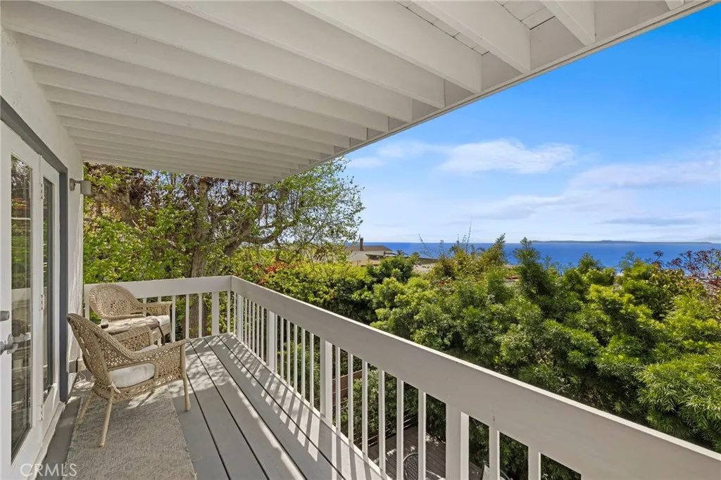 This stunning coastal retreat offers sweeping, unobstructed ocean and coastline views from Catalina Island up the coast toward Rancho Palos Verdes, with whitewater surf, vibrant sunsets, and sparkling city lights along the shoreline. The home has undergone an extensive renovation, with the owners investing a significant amount of time and care into every detail to create a modern, luxurious coastal living experience. Ocean views are visible from the main living areas, the spacious deck off the living room, and a private deck off the primary suite. The open concept living space features high beamed ceilings, skylights, and hardwood flooring, creating a bright and inviting setting for everyday living and entertaining. The kitchen has been fully remodeled with custom cabinetry, white marble countertops, premium Wolf appliances, and a breakfast bar. Large windows and the adjacent deck with glass railings allow for sit-down ocean views and seamless indoor-outdoor flow. The home includes four bedrooms, each with an en-suite bathroom, offering privacy and convenience. The primary suite features a private deck to take in the breathtaking views. Renovated bathrooms include updated fixtures, vanities, countertops, toilets, and new shower enclosures. Additional interior improvements include new flooring, windows, doors, plumbing, and wall insulation. Two bedrooms with separate entrances provide flexible use for guests, a home office, or studio. In addition to the two ocean-view decks, outdoor living is enhanced by two covered courtyards and an upgraded patio with new decking, surrounded by lush foliage for complete privacy and relaxation. Nearby Moulton Meadows Park offers tennis, basketball, pickle ball, soccer, play structures, a dog park, and world renowned hiking; while the best beaches, restaurants, and galleries Laguna Beach has to offer are just moments away.