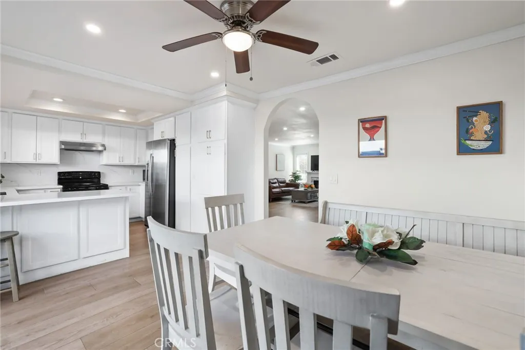 Located in the heart of Irvine, this well-appointed end-unit townhouse in the Deerfield community offers modern comfort and thoughtful design in a beautifully maintained area featuring well-kept grassy area, vibrant blooming bushes and mature trees. Completely remodeled less than two years ago, this three-bedroom, two-and-a-half-bathroom home with spacious loft is move-in ready and features quality finishes throughout. Enter through the front door to find abundant natural light streaming through large dual-pane windows, complemented by 30 recessed lights throughout the home. Luxury vinyl flooring and designer paint colors create a cohesive, polished look in every room. The main floor features an open living and dining room combination, anchored by a built-in electric fireplace that serves as a natural gathering spot. The generous dining area accommodates a large table, ideal for family meals and entertaining. The fully remodeled kitchen showcases white cabinetry, quartz countertops, full backsplash, and stainless-steel appliances, including a refrigerator, dishwasher, a oversized sink and updated range hood. A electric range with double oven completed this kitchen. A breakfast bar connects to the bright family room, which offers flexibility as a home office, playroom, or additional living space. Large sliding doors open to a private patio, while a convenient half bathroom and storage closet are located behind a barn door. Upstairs, three bedrooms and a spacious loft provide ample living space. The primary suite includes an electric fireplace, wall-to-wall closet system with updated sliding doors, and an oversized window. The remodeled primary bathroom features quartz countertops and dual vanities. Two additional well-sized bedrooms and an updated hallway bathroom complete the second floor. A detached two-car garage with new door and motor is conveniently located behind the private patio. The Deerfield Community Association maintains the home exteriors and landscaped grounds. Residents enjoy access to multiple pools, spas, tennis courts, racquetball court, sport court, clubhouse, and outdoor cooking area. The location offers convenient access to neighborhood elementary and middle schools within walking distance, as well as the nearby Culver Shopping Center with its variety of dining and shopping options. The home provides easy access to UC Irvine, the I-405 and I-5 freeways, Irvine Spectrum, South Coast Plaza, and Southern California beaches.
