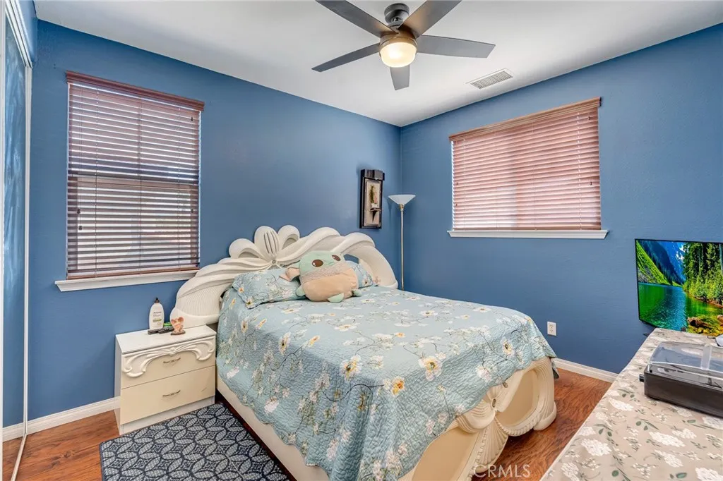 Welcome to this beautifully maintained home in the desirable city of Fontana, featuring owned solar panels that will be paid in full at closing, along with a backup battery system for added energy efficiency and peace of mind! Proudly offered by its original owners, this property was purchased as a new build and has been meticulously cared for ever since. Boasting impressive curb appeal, the home features lush landscaping with automatic sprinklers in both the front and backyard, creating a vibrant and low-maintenance outdoor space. A spacious driveway and rare 3-car garage provide ample parking and storage options. Public records reflect the home as a 4-bedroom, 2.5-bathroom property; however, it offers a functional layout with 5 bedrooms and 3 full bathrooms—all original to the builder with no additions made. The main floor includes a convenient bedroom and full bathroom, perfect for guests or multi-generational living. Upstairs, you’ll find four additional bedrooms, including a generous primary suite complete with its own private bathroom. The second level also features a dedicated laundry room for added convenience. Nestled in a quiet and serene neighborhood away from busy main roads, this home still offers close proximity to local parks, shopping centers, gyms, and provides easy access to the Interstate 15—making commuting a breeze. Best of all, enjoy the freedom of no HOA. This is a rare opportunity to own a well-cared-for, original-owner home in a prime location. Don’t miss out! Upstairs, you’ll find four additional bedrooms, including a generous primary suite complete with its own private bathroom. The second level also features a dedicated laundry room for added convenience. Nestled in a quiet and serene neighborhood away from busy main roads, this home still offers close proximity to local parks, shopping centers, gyms, and provides easy access to the Interstate 15—making commuting a breeze. Best of all, enjoy the freedom of no HOA. This is a rare opportunity to own a well-cared-for, original-owner home in a prime location. Don’t miss out!