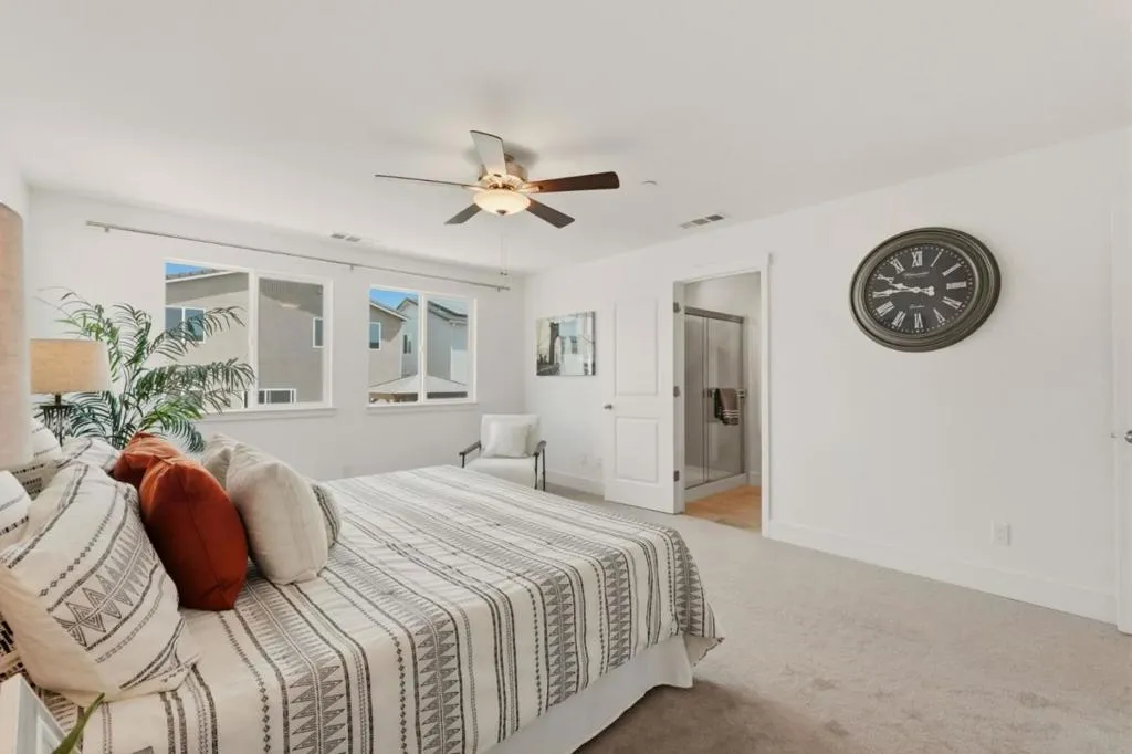 Welcome to 1207 Walker Peak Way, a beautifully designed home in desirable the Santana Ranch community of Hollister. This spacious 3-bedroom, 2.5-bath residence offers approximately 1,807 sq ft of thoughtfully designed living space on a 3,864 sq ft lot. The open-concept layout features high ceilings and a bright kitchen with sleek countertops, gas cooktop, pantry, and modern appliances, flowing seamlessly into the dining and family areas perfect for everyday living and entertaining. The primary suite includes a walk-in closet and a well-appointed bath with dual sinks and luxury shower. Best of all, completely landscaped backyard with gazebo. Additional highlights include installed solar panels, central A/C, indoor laundry, and an attached two-car garage. Conveniently located near parks, shopping, and local amenities, this home blends comfort, style, and functionality.