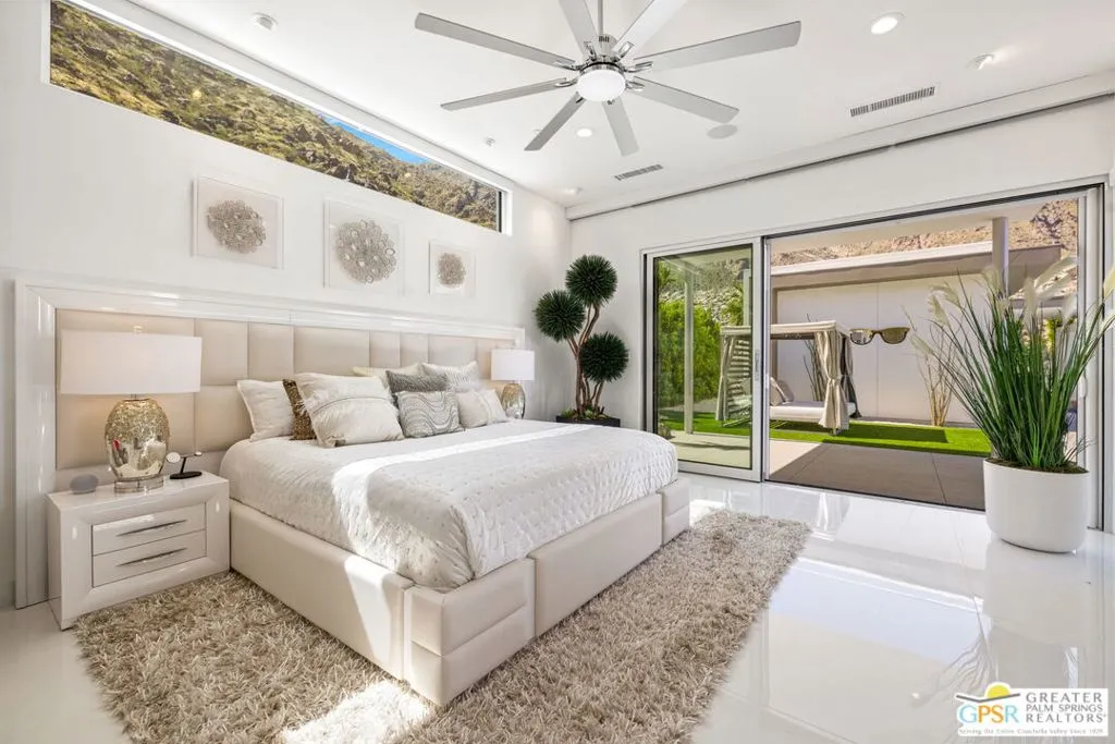 Set within the exclusive gated enclave of ONE Las Palmas in coveted Old Las Palmas, this architecturally striking modern compound captures dramatic, up-close views of the San Jacinto mountains and the iconic Dry Falls. This enhanced residence blends mid-century inspiration with contemporary execution, delivering privacy, scale, and a true resort-caliber lifestyle just moments from downtown Palm Springs. Completed and furnished in 2025 and lightly enjoyed as a private retreat, the home offers a rare sense of newness paired with thoughtful upgrades throughout. Walls of glass, soaring ceilings with clerestory windows, and expansive sliding doors create seamless indoor/outdoor living, filling the interiors with natural light while framing the surrounding landscape. Outdoor living is exceptional. A dramatic pool setting is anchored by an expansive cabana complete with lounge, swim-up bar, bath, BBQ island, and outdoor shower designed for entertaining at scale or relaxing in total privacy. At the center of the home, a gourmet kitchen with oversized island, Cambria quartz surfaces, dual dishwashers, and a full Wolf and Sub-Zero appliance suite opens to the living and dining areas, all oriented toward the pool terrace where the lifestyle unfolds. A generous walk-in pantry enhances both function and entertaining capacity. The floor plan offers excellent separation, with a private Primary Suite wing featuring mountain views, direct pool access, spa-like bath, and Lutron-controlled shades, along with a dedicated work area and powder bath. On the opposite side of the residence, two additional ensuites connect to a flexible media or wellness space, while a detached casita provides a true guest retreat. Infrastructure and efficiency are equally impressive, including 30 solar panels paired with two Tesla Powerwall batteries, four-zone HVAC, integrated audio, full security system, EV charging prep, and upgraded construction finishes throughout. Offered TURNKEY FURNISHED and never rented, this is a rare opportunity to own one of the most compelling modern estates in Old Las Palmas - where architecture, privacy, and lifestyle converge at the highest level.