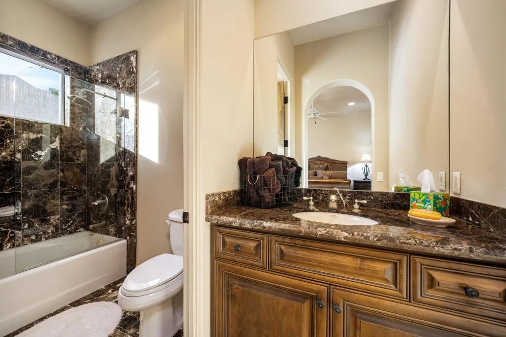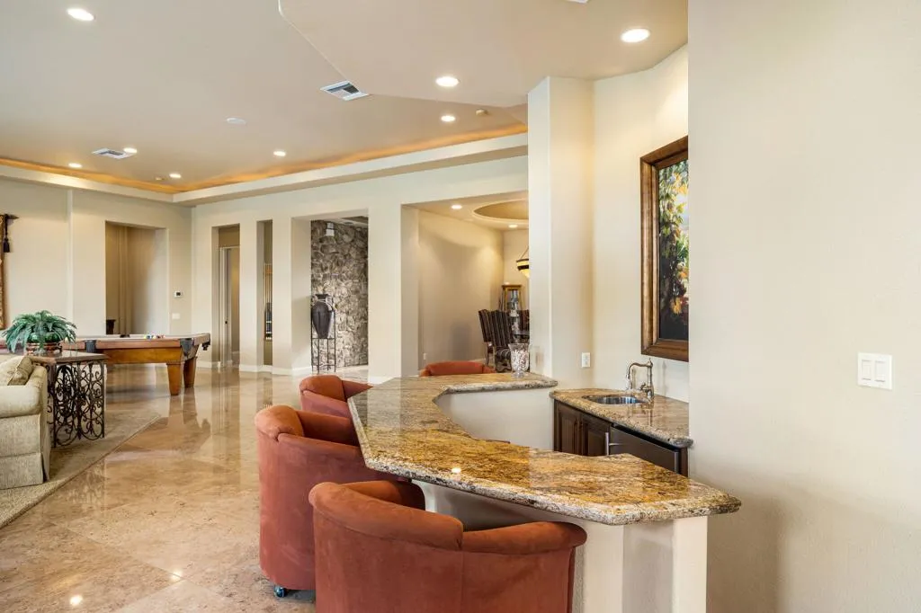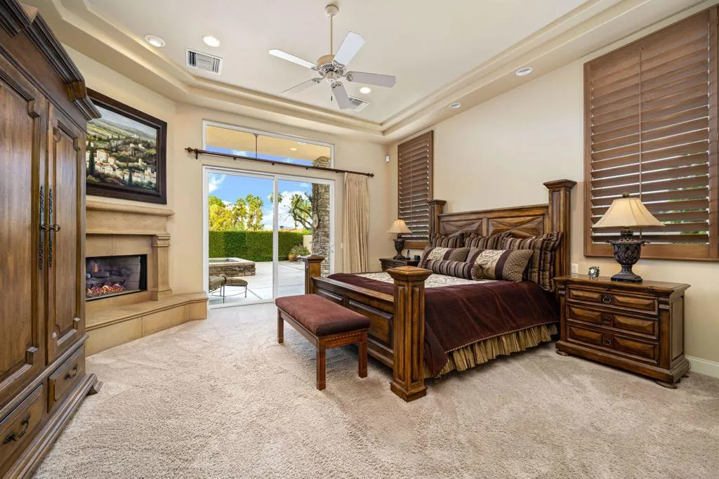 Situated on a premier lakefront corner lot within the legendary PGA West community, this exceptional custom residence offers the ultimate desert resort lifestyle. Spanning approximately 4,512 square feet, the home features 4 bedrooms, 4.5 bathrooms, plus a dedicated media room, all thoughtfully designed within an expansive open great room floor plan ideal for both entertaining and everyday living.Set on an impressive 15,682 square foot lot, the property welcomes you with a circular driveway and oversized 3-car garage with additional golf cart space, perfectly suited for the automobile enthusiast. A private gated courtyard creates a grand entry experience, complete with a tranquil water feature and inviting seating areas.Inside, the residence showcases an array of custom architectural finishes, including 24-inch travertine flooring, rich granite surfaces, custom cabinetry, designer lighting, and high-end fixtures throughout. The chef's kitchen is a true showpiece, featuring commercial-grade Viking stainless steel appliances, extensive cabinetry, and expansive prep space, seamlessly flowing into the main living and entertaining areas.Walls of glass open to a spectacular lakefront backyard oasis, where outdoor living takes center stage. The resort-style grounds feature a sparkling pool and spa with cascading water features, built-in BBQ, outdoor fireplace, and multiple lounging areas, all perfectly positioned to capture serene water views and the surrounding desert landscape.Guests will appreciate the privacy of the separate two-room casita, offering a comfortable retreat ideal for visitors or extended stays. Furnished per inventory.