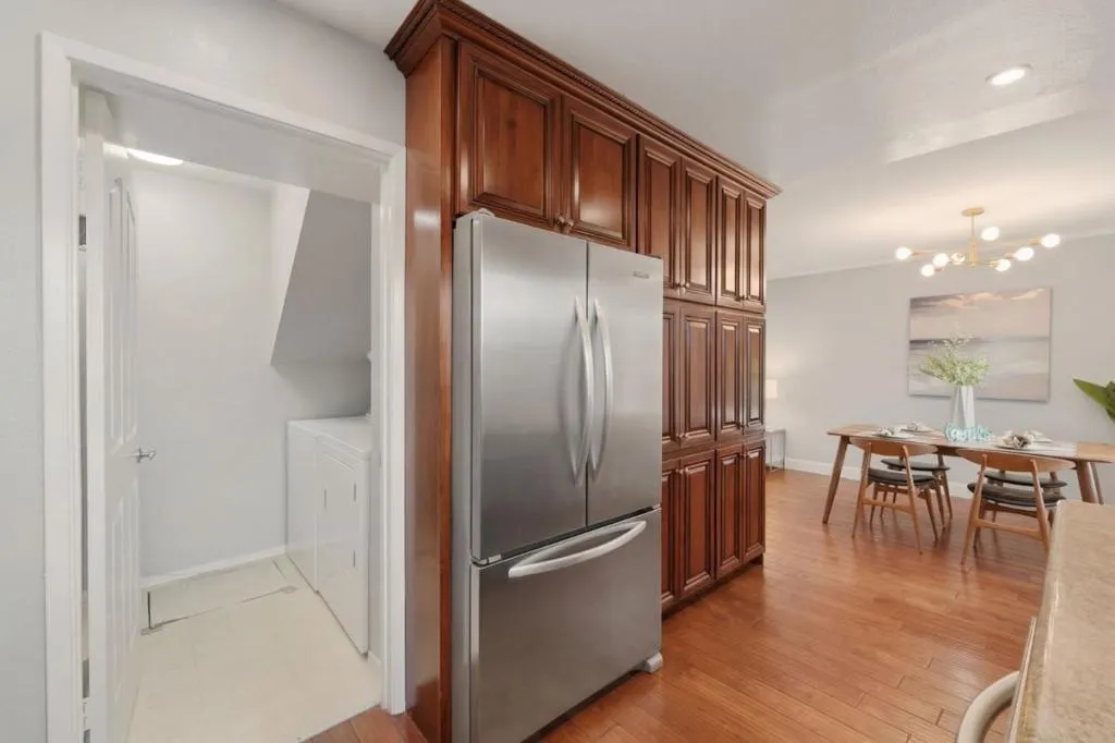 MSJ Schools! Welcome to this charming and well-maintained 3-bedroom, 2-bathroom home nestled in the highly desirable city of Fremont. Offering approximately 1,242 sq ft of comfortable living space, this residence blends functionality with everyday elegance. The bright and well-appointed kitchen features newer stainless steel appliances, while the dining area flows seamlessly into the spacious living room, perfect for both relaxing and entertaining. Stylish laminate flooring runs throughout the home, adding a modern and cohesive touch. Convenience is key with a dedicated utility room that includes a washer and dryer. Enjoy year-round comfort with central A/C and forced air heating. Located within the top-rated Mission San Jose School District, this home offers excellent educational opportunities, making it an ideal choice for families. Residents also have access to community amenities, including a refreshing pool, perfect for unwinding on warm days. The low-maintenance backyard provides a private outdoor space without the upkeep. Combining comfort, location, and top-tier schools, this home is a wonderful opportunity for anyone looking to settle in Fremont.