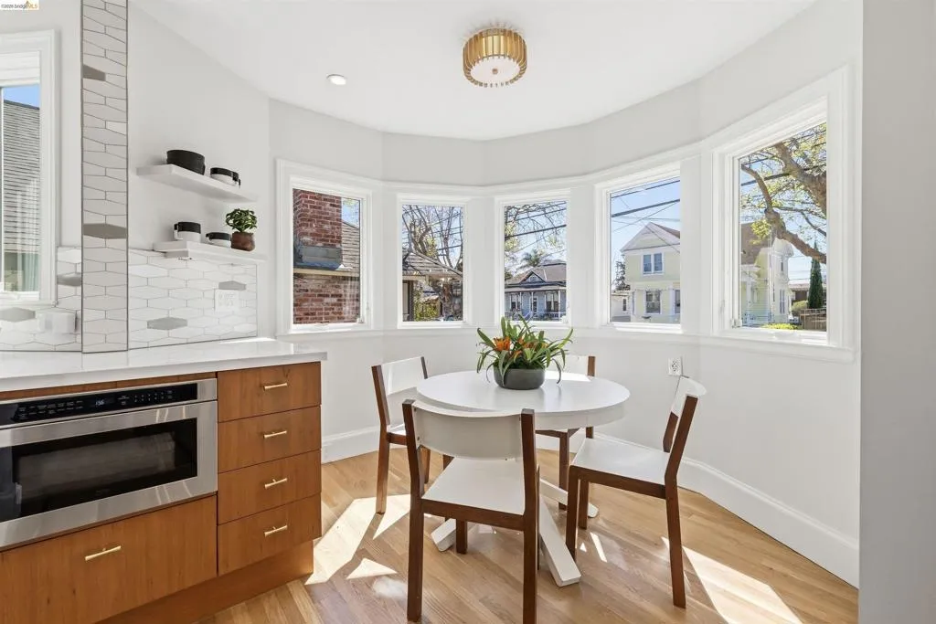 Anyone up for a Fabulous Party? This House IS - with its huge entertaining patio, deck, expansive lawn, hot tub... but hold on a second, because this 3/2 home deserves a moment first. A welcoming front porch leads to a charming entry and expansive living & dining rooms lined with full-length windows that pour sunlight across the wood floors like honey. Notched archways, recessed alcoves above built-ins, and a beautifully tiled fireplace showcase the home’s thoughtful architectural detail. The kitchen continues the theme of light with abundant windows, stainless steel appliances, contemporary tile, generous counter space, and great storage. A breakfast nook wrapped in windows makes mornings feel bright and easy. Two spacious bedrooms a lovely full bath complete this level. Split level up to the primary bedroom with treetop views, room for a king bed, and a walk-in closet. Down a few steps is a flexible bonus area: laundry, pantry storage, home office, plus another remodeled full bath. Through glass French doors step outside to your expansive lot of patio/lawn/deck/hot tub/garage/family room and detached additional office! This house is FUN! There is even a back gate to Lincoln Park & this one-of-a-kind home is less than a mile to both Fabulous Park St & Edison Elementary!