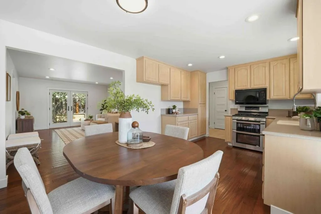 Nestled on serene James Lex Lane in Morgan Hill, this beautifully updated single-story gem offers 4 bedrooms, 2.5 bathrooms, and a perfect blend of style, comfort, and functionality. The thoughtful layout includes a private bedroom set apart from the others - ideal for guests or a home office - along with a versatile room that can serve as a dining or family room, a cozy breakfast nook, and a living room complete with a charming fireplace. Step inside and you'll immediately notice the fresh updates: modern doors, hardware, lighting, and tastefully renovated bathrooms. The recently painted interior enhances the natural light that floods the home, while the hardwood floors, updated blinds, trim, and custom closet organizers add timeless elegance and practicality. The backyard is a peaceful retreat, shaded by mature trees that create a sense of privacy. Situated on a quiet cul-de-sac, this home is just a short stroll from downtown Morgan Hill's vibrant shops and restaurants, as well as nearby parks. Whether you're hosting, relaxing, or exploring the neighborhood, this home offers it all with ease and sophistication.