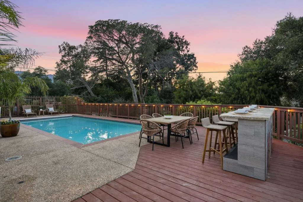 Located in the desirable Los Altos Country Club neighborhood, this 3-bed, 2-bath home offers 1,807 sf of living space on a 7,954 sf lot with expansive Bay Area views and excellent indoor-outdoor living. The open-concept floor plan connects the living room, dining area, and kitchen, creating a bright and functional layout ideal for everyday living and entertaining. Large windows throughout the home bring in natural light and showcase surrounding views. The primary suite provides a private retreat, while two additional bedrooms offer flexibility for guests, office space, or family. Outdoor spaces are designed for relaxation and entertaining with multiple patios, landscaped areas, and a heated pool with adjacent terrace. An outdoor kitchen and gathering areas provide additional options for hosting and enjoying the views. Additional features include a water fall off the dining patio, and an attached garage off the circular driveway. Conveniently located minutes from Downtown Los Altos with shops, restaurants, and community events. Easy access to major commute routes and nearby tech campuses in Mountain View and Palo Alto, Sanford Hospital, and top rated Los Altos schools.