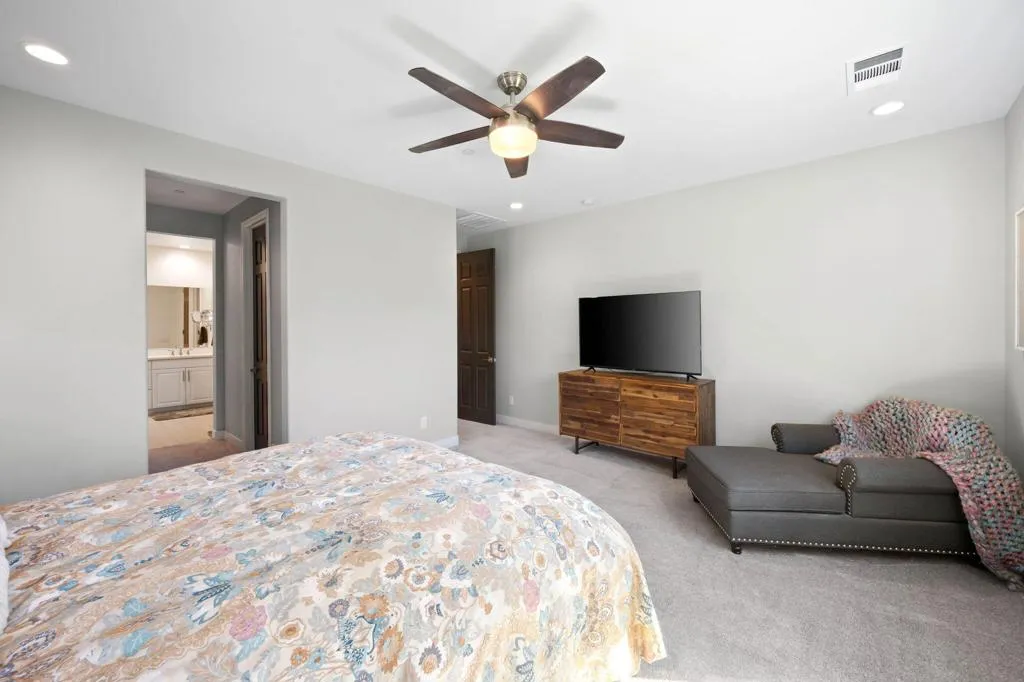 Experience La Quinta living in this upgraded Pomona plan, where modern ranch meets private desert oasis. The heart of the home is a chef-inspired kitchen featuring a massive center island and walk-in pantry, flowing seamlessly into an expansive great room and dining area. Retreat to the primary suite with a spa-like bath and generous walk-in closet, while three additional bedrooms and a quiet study complete the perfect package.The true showstopper awaits just outside though; a backyard sanctuary centered around a sparkling, custom-shaped pool and a spacious covered patio surrounded by a lush desert landscape.Complete with a three-car garage (including a private side-entry bay perfect for a golf cart or workshop), this move-in-ready gem offers the ultimate blend of luxury and utility in the desert.