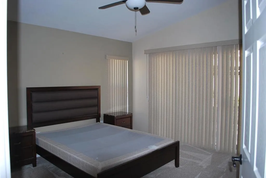 Will rent furnished/unfurnished. Resort-Style Living in Sun City...Charming, clean Gorham Model HomeDiscover this beautifully maintained Gorham model, featuring 2 bedrooms and 2 bathrooms, designed for resort-style living in the highly sought-after Sun City community. Step inside to a bright and inviting kitchen equipped with stainless steel appliances, a convenient eating bar, and a skylight that fills the space with natural light. The kitchen seamlessly opens into the dining area and living room, creating a perfect setting for everyday living and entertaining. Enjoy elegant granite countertops, stylish shutters, tile flooring, and brand-new carpeting throughout the home. Primary SuiteThe spacious master suite offers direct access to a covered patio through a sliding glass door--an ideal spot for entertaining guests or relaxing outdoors. The en-suite bathroom features a double vanity, a walk-in shower, and dual closets for ample storage. This suite is furnished with a bed frame, box spring, and headboard for your convenience. Guest AccommodationsThe guest bedroom is situated on the opposite side of the home, ensuring privacy, and is located adjacent to a full bathroom. This room includes a murphy bed and dresser, providing comfort and flexibility for visitors. Additional FeaturesThe laundry area is equipped with an updated washer and dryer for your convenience. The spacious double garage offers plenty of storage, and a tankless hot water heater adds to the home's modern amenities. Professionally designed desert landscaping in both the front and backyard enhances the outdoor living experience, making it a joy to entertain family and friends. Community AmenitiesSun City residents enjoy a vibrant lifestyle with access to over 80 clubs, two meticulously maintained 18-hole championship golf courses, swimming pools, spas, and two on-site restaurants. Conveniently, Stater Brothers shopping and Legend's Restaurant are accessible by golf cart, adding to the community's appeal. Owner pays HOA/Landscaping. Lessor pays Water,, electric, gas & trash.Come and enjoy resort living at its best!