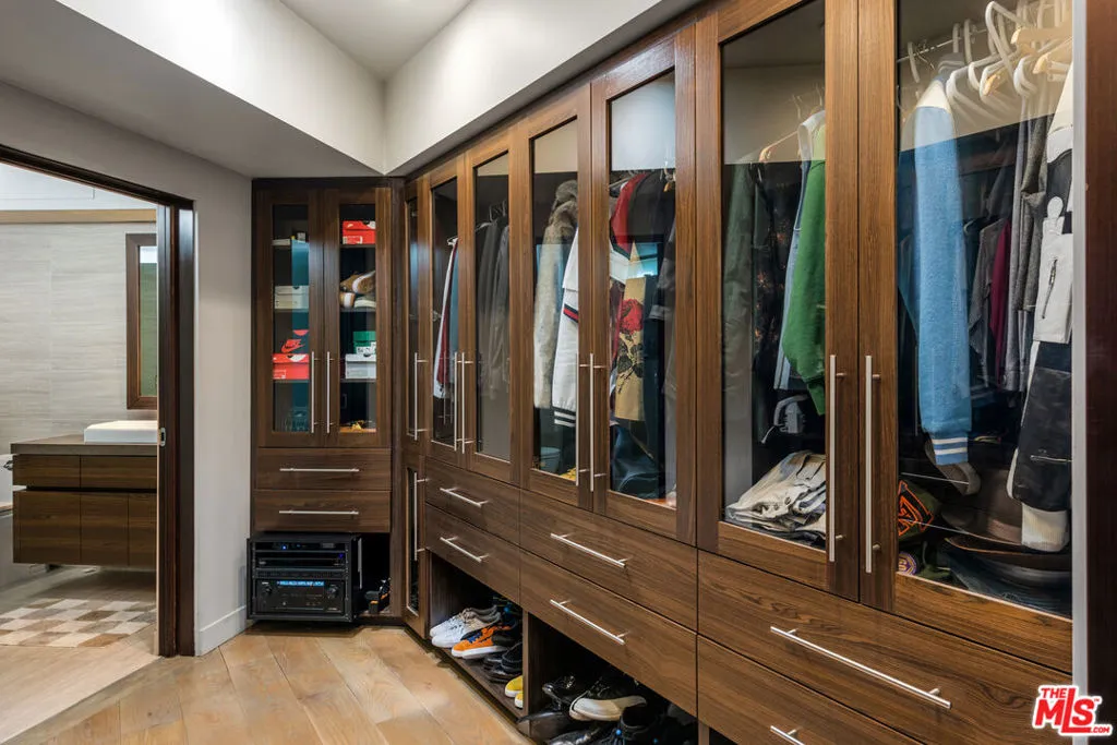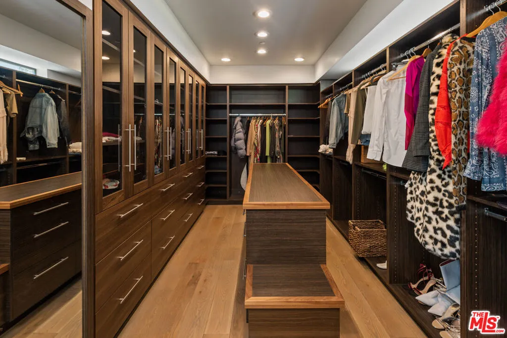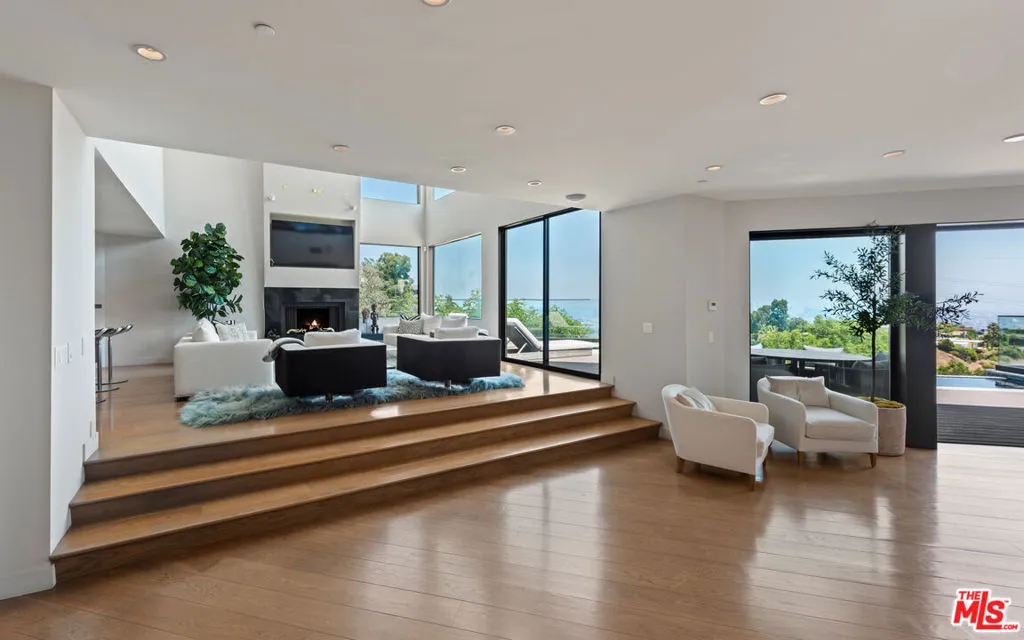 A warm modern oasis perched in the iconic Hollywood Hills. Behind a gated entry, this sophisticated residence showcases sweeping panoramic views of the Los Angeles skyline and the world-famous Hollywood Sign. Designed for effortless modern living, the home features an expansive open floor plan with walls of glass that frame the city lights below. Spanning approximately 5,850 square feet, the property offers 5 bedrooms and 7 bathrooms, including an oversized primary suite with breathtaking views, dual spa-like bathrooms, and generous walk-in closets. A gourmet chef's kitchen, private home theater, and multiple entertaining spaces create the perfect setting for both relaxed living and hosting. Seamless indoor-outdoor flow opens to expansive terraces ideal for entertaining while overlooking the city. Additional highlights include a gated entry and parking for up to 8 vehicles, completing this exceptional Hollywood Hills offering.