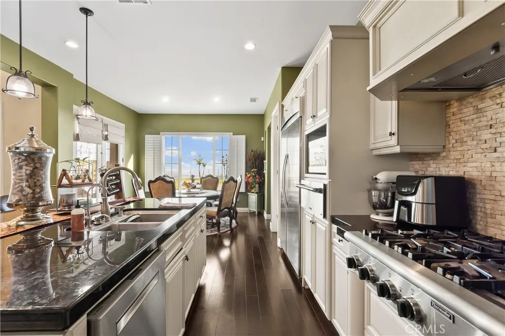 Perched in the prestigious North Etiwanda community of Rancho Cucamonga, this north facing view home showcases breathtaking panoramic city lights, sunset, and mountain views, including snow capped peaks during the winter months. Set on an expansive 0.37 acre lot, this luxury property offers exceptional privacy and a peaceful setting in one of the area’s most sought after neighborhoods. Inside the home features 4,297 sq ft of well designed living space with soaring ceilings, abundant natural light, and a spacious open floor plan ideal for modern living.The gourmet kitchen is equipped with granite countertops, a large center island, breakfast bar, stainless steel appliances, and a built in refrigerator, opening to expansive living and entertaining areas perfect for gatherings. Step outside to a resort style backyard designed for true indoor outdoor living, complete with a sparkling pool, multiple fire pits, seating areas, and glass view fencing that captures sweeping city lights and vibrant sunset views across the valley, an ideal entertainer’s backyard. A rare opportunity to own a panoramic view home offering space, privacy, and elevated living in one of Rancho Cucamonga’s premier neighborhoods.