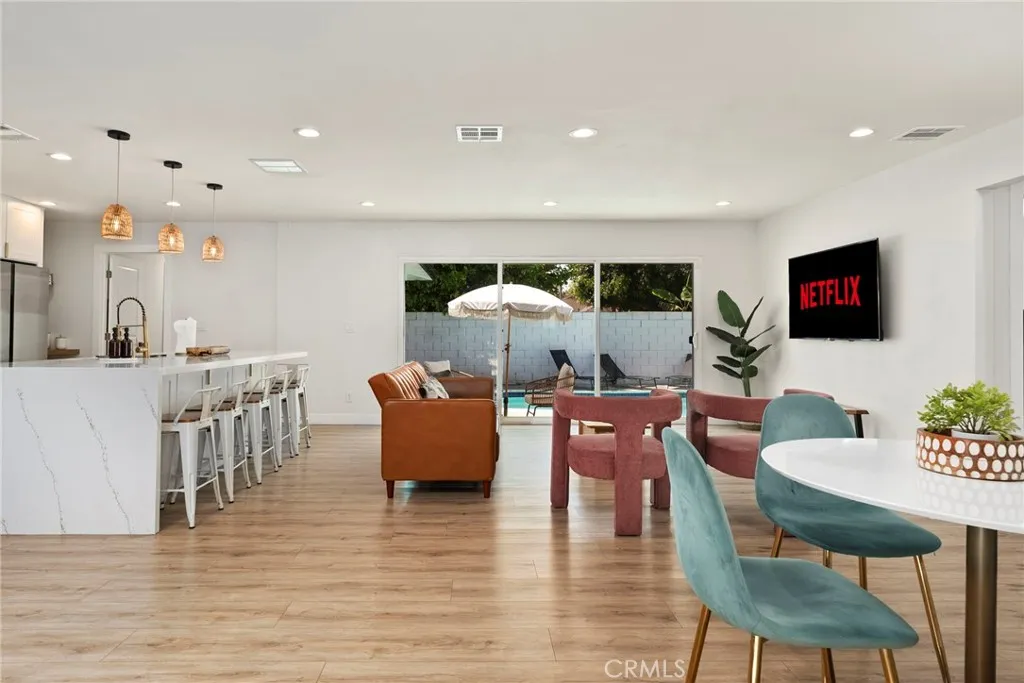 Welcome to this thoughtfully remodeled residence in the desirable Edna Park community. This four-bedroom, three-bathroom home has been fully renovated from the ground up, offering modern comfort, style, and functionality for today’s lifestyle. Inside, you’ll find open and inviting living spaces with new laminate flooring throughout. The gourmet kitchen is equipped with quartz countertops, stainless steel appliances, and a built-in coffee bar, creating the perfect setting for both daily living and entertaining. All bathrooms have been elegantly updated with custom tile work and high-end finishes, while new lighting enhances the warm and inviting atmosphere. The home has been upgraded with a new roof, HVAC system, electrical, and a refinished garage with epoxy flooring. For added security and peace of mind, the property is equipped with a modern camera system. The backyard serves as a private retreat, featuring a completely refinished pool surrounded by manicured landscaping, fruit trees, and decomposed granite pathways framed by privacy hedges. A rare highlight of this property is the fully permitted Junior ADU—complete with one bedroom, one bathroom, an optional kitchenette, and a private entrance with direct access to the pool. This versatile space is ideal for guests, extended family, or as a potential rental. Additional conveniences include available stylish furnishings, allowing the home to be offered fully furnished if desired, making for a seamless move-in experience. This home combines luxury finishes with practical upgrades, making it an excellent rental opportunity in a prime location.