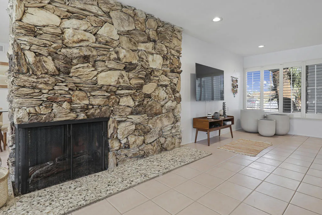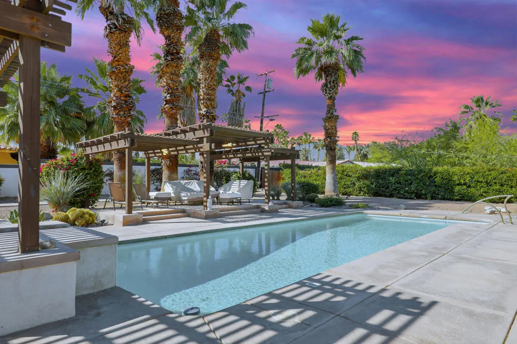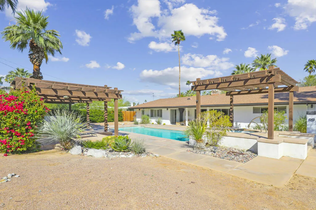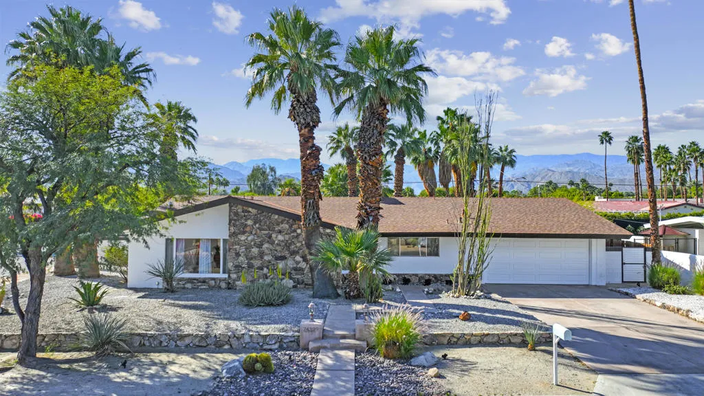 This one checks ALL the boxes!!! Prime location in sought-after prestigious neighborhood of SOUTH PALM DESERT! This spacious Mid-Century Modern 3-bedroom 3-bathroom ( all with walk in closets) is on a large 14520 square foot (1/3 acre).lot. Beautifully maintained by the discerning homeowner, retaining the originality of yesteryear, the 2,156 square-foot home is conveniently located near El Paseo with its fine-dining options and shopping, It boasts spectacular views from the large patio-shaded backyard outdoor living area, with backyard access from the dual master bedrooms. Not to be missed is the picturesque full-size slider window in the living room, with unobstructed Southerly views and the renovated 1960's pool and waterfall spa. There is a side gate for RV parking or a potential ADU for someone looking to build on for guests aging parents, or rental income. All three bedrooms have ensuite bathrooms and expansive walk-in closets. The stacked rock fireplace and sunken tubs is a time capsule for architects like Burns, Meiselman and Wexler in the 1960.s. The back yard and pool area is exactly what the desert lifestyle is all about!!! NO HOA , easy to show!!