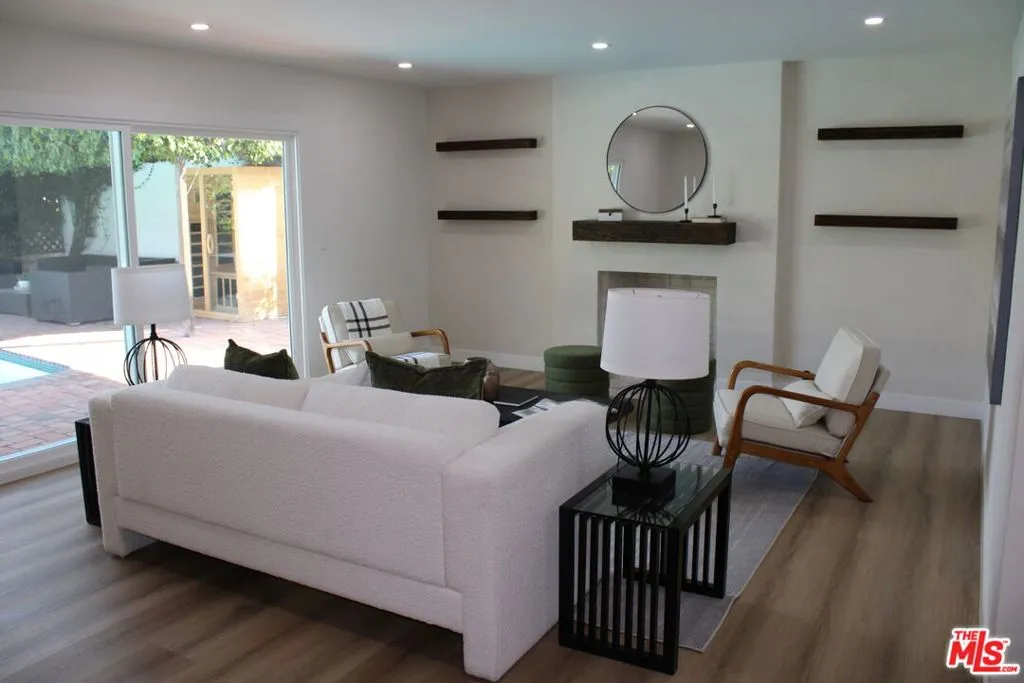 Welcome to this stunning single-story luxury ranch retreat nestled on a peaceful cul-de-sac in one of Hacienda Heights' most desirable neighborhoods. Set on a nearly 10,000 square foot lot, this beautifully reimagined five-bedroom, three-and-a-half-bath residence offers the perfect balance of modern sophistication, comfort, and resort-style living. Step inside to an open, light-filled floor plan featuring a formal living room with a custom Venetian plaster fireplace and an elegant dining space that flows seamlessly into the designer kitchen. Thoughtfully crafted for both style and functionality, the kitchen showcases a dramatic waterfall peninsula, slim shaker cabinetry, quartz countertops, a designer backsplash, and a full suite of stainless steel appliances including a gas range, hood, refrigerator, and dishwasher. The spacious family room offers a second fireplace and a stylish bar area with a wine refrigerator, creating the perfect space for entertaining. A versatile sunroom provides flexible living space ideal for a home office, reading lounge, or playroom.Extensive upgrades throughout the home include newer vinyl flooring, fresh interior and exterior paint, updated moldings, new door hardware, vinyl retrofit windows, and new sliding glass doors that flood the home with natural light. All bathrooms have been beautifully remodeled with designer finishes including new vanities, custom tile, mirrors, fixtures, and modern lighting.The backyard is a true private oasis featuring a sparkling heated pool with fresh plaster, an expansive paver patio, two covered patios, and multiple outdoor lounge areas. A custom sauna beneath a charming vine-covered pergola creates a spa-like retreat perfect for relaxation and entertaining.Additional highlights include a new roof, new garage door with frosted glass panels, updated exterior lighting, a new front entry door with Ring doorbell, central HVAC system (2022), new water heater (2022), and a fully updated electrical system. A detached two-car garage offers excellent ADU potential for additional living space, a guest house, or rental income. The lush grounds are enhanced by mature fruit trees including grapefruit, pomegranate, orange, lemon, tangerine, and avocado. Ideally located near shopping, dining, schools, and the 60 freeway, this exceptional property offers the perfect blend of privacy, luxury, and everyday convenience.