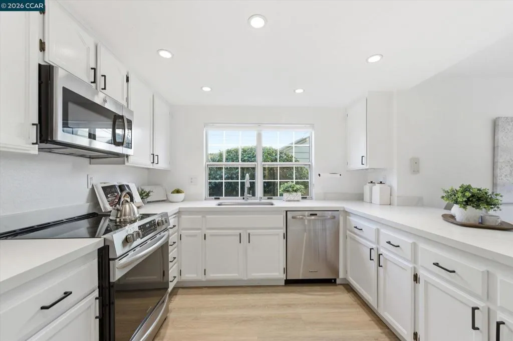 Welcome to the highly desirable Village community, ideally located within close proximity to the freeway, John Muir hospital, shopping, and scenic biking and hiking trails and heather farms. This beautifully updated home offers soaring ceilings, abundant natural light, and a thoughtfully designed open layout perfect for both everyday living and effortless entertaining. Featuring 3 spacious bedrooms and 3 bathrooms. The home showcases beautiful finishes throughout, including upgraded flooring, a modernized kitchen with quartz countertops, stainless steel appliances and refreshed cabinetry. The inviting living and dining areas flow seamlessly, enhanced by vaulted ceilings and large windows that create a bright and airy atmosphere. Step outside to the private yard great for entertaining. 2 car attached garage, ample storage. access to community amenities such as pool and tennis courts. A rare opportunity to own a well cared for home in one of Walnut Creek's sought after communities.