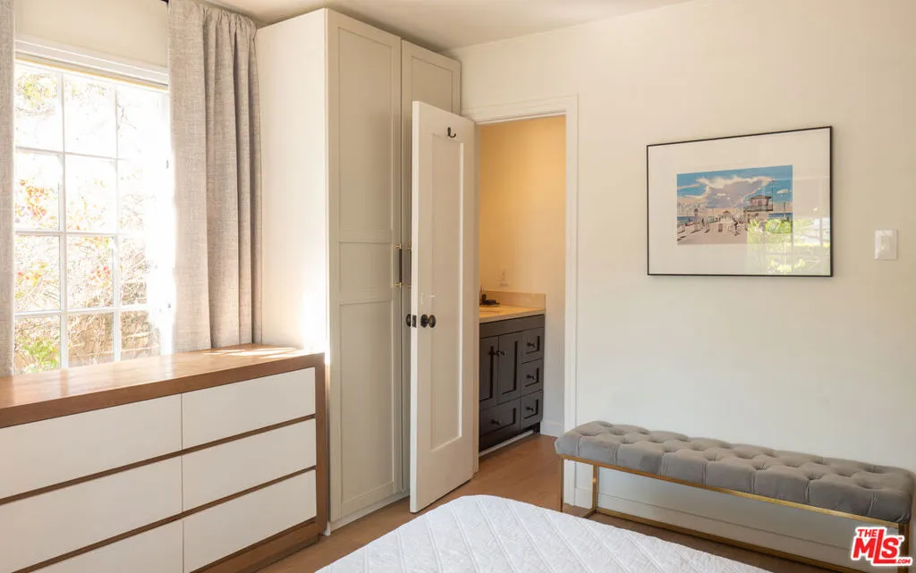 Private Beverly Grove retreat with a pool, spa, and detached ADU just moments from the boutiques and cafes of Melrose Place. This beautifully updated residence offers 2 bedrooms and 1.5 bathrooms across 1,053 s.f. with a bright and inviting floor plan that blends classic architectural character with tasteful modern updates. A detached ADU of approximately 255 s.f. with a kitchenette and bathroom provides excellent flexibility for guests, a home office, or potential rental income. Situated on a 4,207 s.f. lot, the backyard feels like a private oasis, featuring a pool and spa, lush landscaping, and inviting outdoor spaces ideal for relaxing or entertaining. Ideally located in the highly sought-after Beverly Grove neighborhood, just minutes from premier shopping, dining, and entertainment including The Grove, Original Farmers Market, and the boutiques and restaurants along Melrose Avenue.