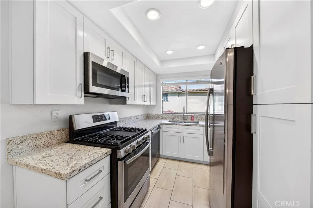 Beautifully maintained upper-end unit located in the highly desirable Tierra Vista community. All living spaces are privately situated on the second level, with both bedrooms and the main living area facing south, allowing for abundant natural light throughout the day. This turnkey home features a spacious primary suite and a well-sized second bedroom, both offering large closets with mirrored wardrobe doors. There are two full bathrooms, including a primary ensuite. Fresh interior paint and refreshed bathrooms enhance the home’s move-in ready appeal. The bright and airy living room opens to a private balcony with a natural gas hookup, ideal for outdoor grilling and relaxation. The kitchen is appointed with premium cabinetry, quartz countertops, stainless steel appliances, and a new dishwasher. Additional highlights include a convenient laundry chute leading to the downstairs garage laundry area with extra storage, as well as a large private driveway. This pet-friendly community offers easy access to the association pool and spa, walking trails, and nearby parks. Come see this wonderful home and make it yours!