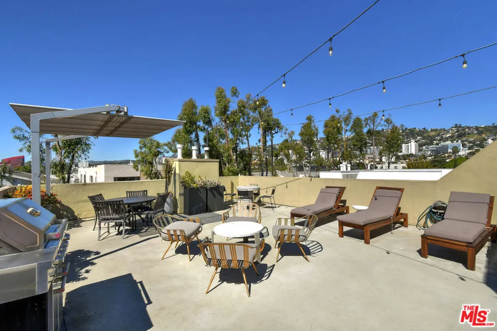Welcome to easy West Hollywood living in one of the area's most desirable locations. This move-in-ready 1-bedroom, 1-bath condo offers 664 square feet of comfortable, efficient living space in a secure building just moments from Melrose Place, popular dining, great coffee spots, shopping, and nightlife. With a strong walkability score, you can leave the car behind and enjoy the best of the neighborhood right outside your door.Inside, the layout feels open and functional, with a private balcony accessible from both the living room and bedrooman ideal spot for morning coffee or winding down at the end of the day. The unit also includes deeded gated parking, adding convenience and peace of mind. Residents enjoy access to an expansive rooftop deck with panoramic city views, a BBQ area, spa, sauna, fitness center, billiards room, guest parking, EV charging, and laundry on every floor. HOA dues include water, gas, trash, and earthquake insurance, making ownership even more convenient. Stylish, secure, and close to everything, this condo offers a great opportunity to enjoy the West Hollywood lifestyle.