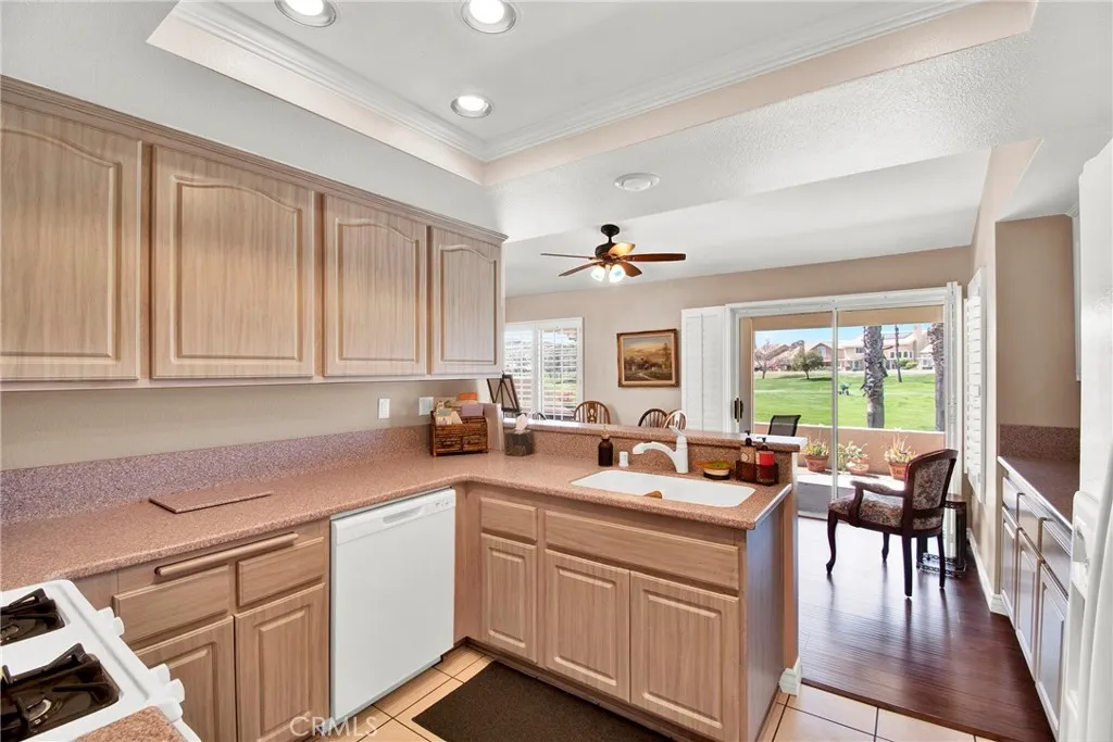 GOLF COURSE 'PEBBLE BEACH' CONDO (Single Level 1,390 Sq Ft), Located in Sun Lakes Country Club, a 55+ Luxury, Active Adult Golf Community, on the 18 Hole Championship Golf Course - NO MELLO ROOS for Lower Taxes. Perfectly Perched above the Championship Golf Course with Panoramic Golf Course and Mountain Views. Approx 1390 SF, 2 BD, 2 BA, Featuring: a Living Room with Fireplace, Cathedral Ceilings, Spacious Primary Bedroom w/Walk In Closet, Large Guest Bedroom. Upgrades include: Neutral Laminate Flooring; Corian Kitchen Counters with Seamless Corian Sink, Plantation Shutters Throughout, AlumaWood Patio Cover, Original Air Conditioner, Furnace Replaced. Refrigerator, Washer, Dryer are All Included. Furniture is Available........ Sun Lakes Country Club goes beyond just a place to live - It's a vibrant community designed to keep you Active & Engaged, offering: TWO 18-HOLE GOLF COURSES with 2 Pro Shops, THREE Clubhouses, TWO Restaurants, Bar & Lounge, Tennis, PICKLEBALL COURTS, Pools (Including Large Indoor Pool), Jacuzzi Spas, THREE Fitness Centers & Fabulous Planned Activities Offered on a Daily Basis. There are 80+ Social CLUBS, including: Dancing, RV Club, Yoga, Table Tennis, Cards, Bocce Ball, Bowling, Car Club, Drama/Theatre Club, Sewing, Tennis, Knitting, Bingo, Travel, Quilters, Art League, International Culture, Genealogical Society, Garden, Photography, Travel, and a lot MORE .... If that's not Enough, Add TRIPS AND TRAVEL EXCURSIONS scheduled all year long. Association Dues INCLUDE CABLE TV & INTERNET - The community is Located Close to Casinos, World Famous Shopping (Cabazon and Palm Springs), Restaurants, and Excellent Medical Facilities - SUN LAKES COUNTRY CLUB is has a backdrop of two Mountain ranges, which offer stunning views - LIFE IS GOOD in our Awesome Community!