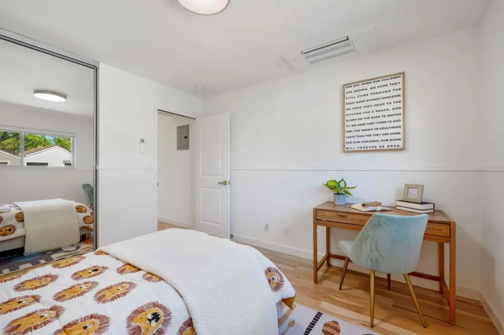 Welcome to 2410 S Park Ln in Santa Clara, a beautifully reimagined south-facing townhouse that perfectly blends modern comfort with Silicon Valley convenience. This rare two-story home features 3 bedrooms and 2.5 bathrooms and has been thoughtfully remodeled with permits, including a 188 sq ft addition that enhances both living space and functionality. The bright, sun-filled interior showcases stylish contemporary finishes, a brand-new kitchen with all new appliances, high-end bathrooms, and a new energy-efficient heat pump HVAC system. Every detail has been carefully curated to create a fresh, elegant, move-in ready home. Rare for the community, the property also offers a welcoming front yard and private driveway. The private backyard opens directly to a tranquil greenbelt, providing a peaceful setting ideal for relaxing or entertaining. Residents enjoy a well-maintained community with a swimming pool and family-friendly environment, just moments from NVIDIA and other major Silicon Valley tech campuses. This is really a rare opportunity to own a bright, beautifully upgraded townhouse with both front and backyard space in one of Santa Claras most desirable locations.