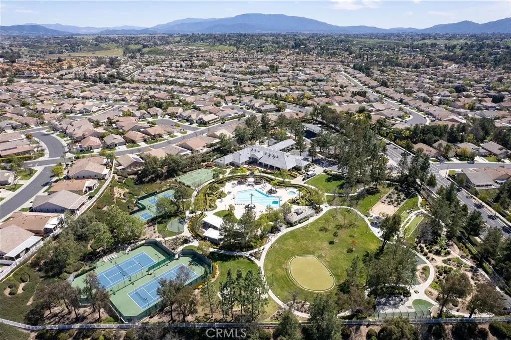 Beautifully Appointed Single-Story Home Located In The Prestigious Four Seasons Community By K. Hovanian In Murrieta, A Master-Planned 55+ Active Adult Neighborhood Known For Its Outstanding Amenities And Vibrant Lifestyle. Residents Enjoy Access To A Beautiful Clubhouse With Resort-Style Pool And Spa, Tennis Courts, Pickleball Courts, And A Wide Variety Of Organized Social Activities And Community Events. This Light, Bright, And Airy Home Offers High Ceilings Throughout And A Spacious Floor Plan Featuring Two Bedrooms Plus A Dedicated Office, With Each Bedroom Having Convenient Access To Its Own Full Bathroom. The Home Features Cool Tile Flooring Throughout The Main Living Areas And Berber Carpet In The Bedrooms. Plantation Shutters And Blinds Are Installed Throughout, Along With Ceiling Fans For Year-Round Comfort. Raised Panel Doors And Custom Chandeliers In The Dining Room Add To The Home’s Attractive Finishes. The Kitchen Is Spacious And Functional With White Tile Countertops, Abundant Cabinetry, A Center Island, And An Inviting Eat-In Kitchen Area. Appliances Include Double Ovens, Dishwasher, Microwave, And A Four-Burner Gas Cooktop. The Kitchen Opens To The Great Room Featuring Custom Built-In Cabinetry And Shelving. The Office Also Includes Custom Built-Ins, Perfect For Working From Home Or Hobbies. The Primary Suite Features High Ceilings, Berber Carpet, Two Walk-In Closets, And A Spacious Bathroom With Dual Vanity Sinks, Separate Soaking Tub, Walk-In Shower, And Private Toilet Area. Additional Highlights Include An Indoor Laundry Room With Washer, Dryer, And Utility Sink, A Finished Two-Car Garage With Built-In Cabinetry, And Rain Gutters Installed Along The Exterior. The Backyard Offers A Covered Patio Integrated Into The Structure Of The Home, Creating A Comfortable Outdoor Living Space Perfect For Relaxing Or Entertaining. Brick Pavers Are Installed In Both The Front And Backyard Areas. The Backyard Also Features Artificial Turf, Irrigation, Multiple Electrical Outlets For Outdoor Lighting, Cozy Seating Areas With A Park Bench, Custom Lamp Posts, And Well-Maintained Wood Fencing. Enjoy Stunning Unobstructed Views That Provide A Peaceful Backdrop To This Wonderful Property.