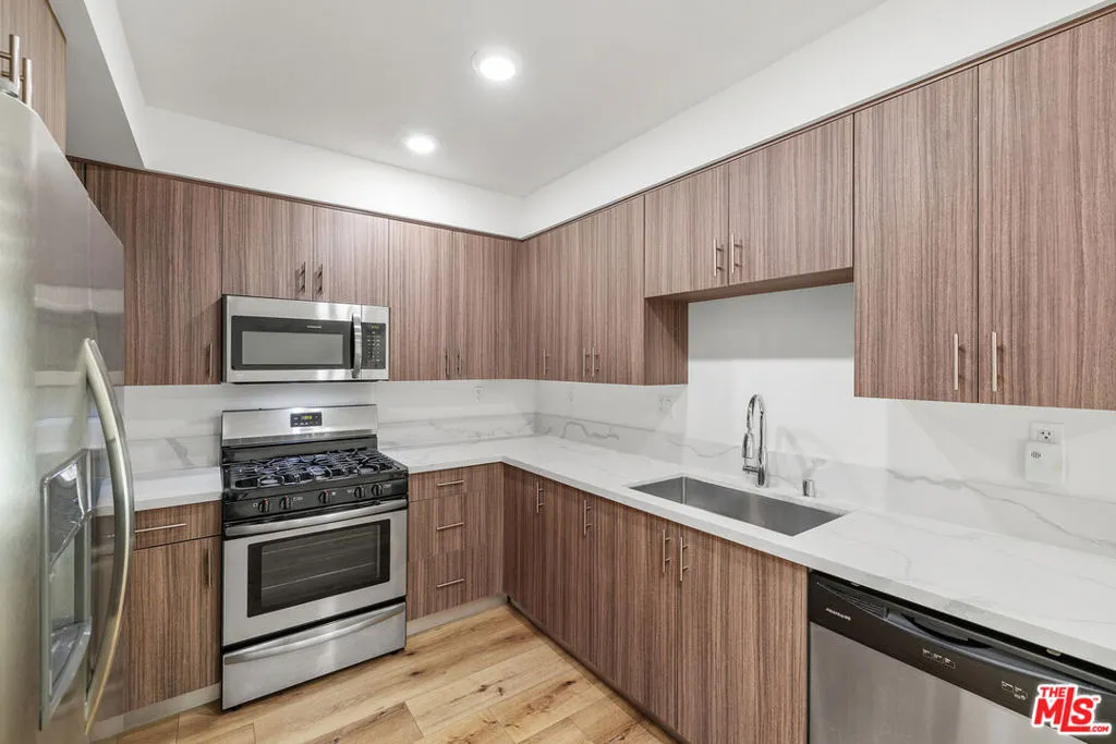 Step into a world of refined living at this exquisite unit which boasts stunning views facing the street, adding to its charm and desirability. 2-bedroom, 2-bathroom apartment complex nestled in North Hollywood's heart. Bathed in natural light, these residences blend opulence with convenience seamlessly. Located exceptionally, our complex opens doors to North Hollywood's finest. With gated tandem parking and an intercom entry system ensuring privacy, convenience is paramount. Access your apartment effortlessly with the elevator, offering both ease and accessibility.Indulge in culinary delights in the modern kitchen, equipped with sleek stainless steel appliances enhancing your cooking experience. Each apartment features a spacious balcony, offering a private outdoor retreat for relaxation and enjoyment. Oversized windows flood interiors with light and provide scenic views.Enhancing your lifestyle is the rooftop terrace, an oasis of tranquility boasting panoramic views of the San Fernando Valley. Whether entertaining guests or seeking personal solace, this rooftop sanctuary offers an elevated perspective on city living.Inside, comfort and luxury define every aspect of the living experience. Generously illuminated spaces create an inviting ambiance, fostering warmth and well-being. Elevate your standard of living at our luxurious North Hollywood complex, where refinement meets practicality. ***Photos depict a similar unit.