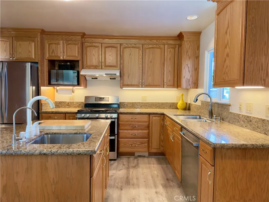 Thoughtfully updated and meticulously maintained, this Covina home blends modern functionality with comfortable everyday living. Updated and expanded in 2002 with all work fully permitted, the home features upgraded plumbing, an expanded layout connecting the house and garage, and numerous practical enhancements throughout. The kitchen showcases quality Kraftmaid cabinetry, abundant storage, and a large island with an additional prep sink. A wine refrigerator and laundry appliances are included, and the space flows seamlessly into the dining and living areas—ideal for entertaining and daily life. The walls were opened and insulated to keep house cool, you can really feel the difference! Designed with convenience in mind, the home includes a whole-house vacuum system, Cat 5 hard wiring, ceiling fans in every room, and energy-efficient LED lighting throughout. The hallway bath is brightened by solar tubes and equipped with high-CFM, ultra-quiet ventilation. The private primary suite features dual closets, including a walk-in closet within the bathroom. The insulated garage offers exceptional versatility, featuring a vinyl floor, window, dedicated A/C ducting, wiring for surround sound and electronics, a utility sink and additional attic storage with a plywood floor provides even more practical space. Outside, the backyard creates a peaceful retreat with mature citrus trees—including navel oranges, limes, lemons, and juicing oranges—alongside rosemary, peppermint, spearmint, and lavender that attract butterflies, hummingbirds, and bees. Entertain with ease thanks to the gas-piped BBQ, outdoor sink with cold water, ample landscape lighting, and established drainage. Footings are already in place should you wish to expand the patio cover. Additional highlights include a 200-amp electrical panel, rooftop A/C and furnace, WiFi-controlled Orbit irrigation, and fresh exterior paint completed in summer 2025. A rare combination of thoughtful upgrades, practical storage, and inviting outdoor living—this Covina home is ready to be enjoyed.
