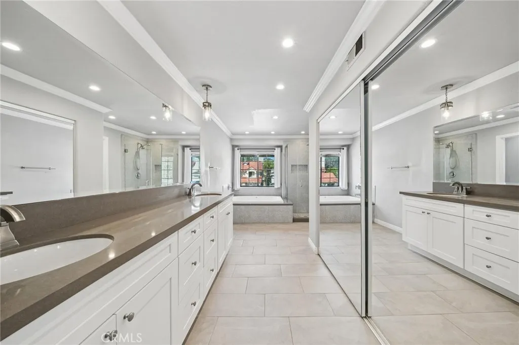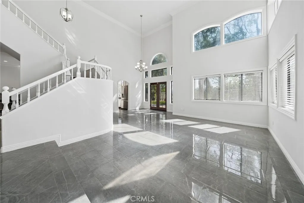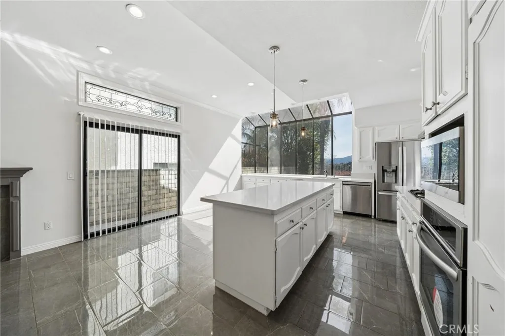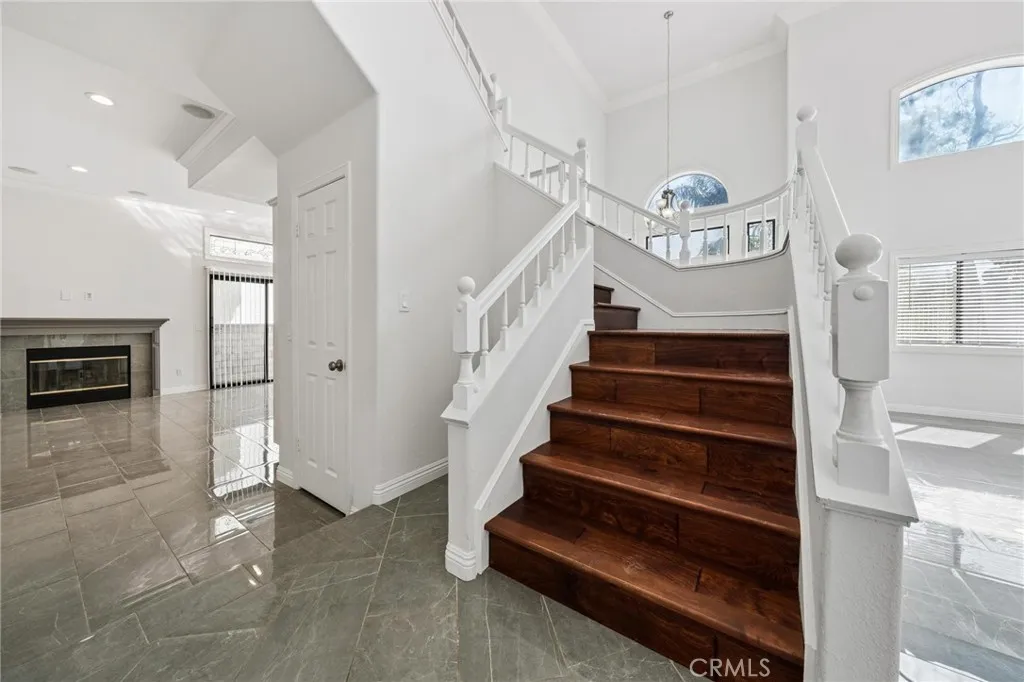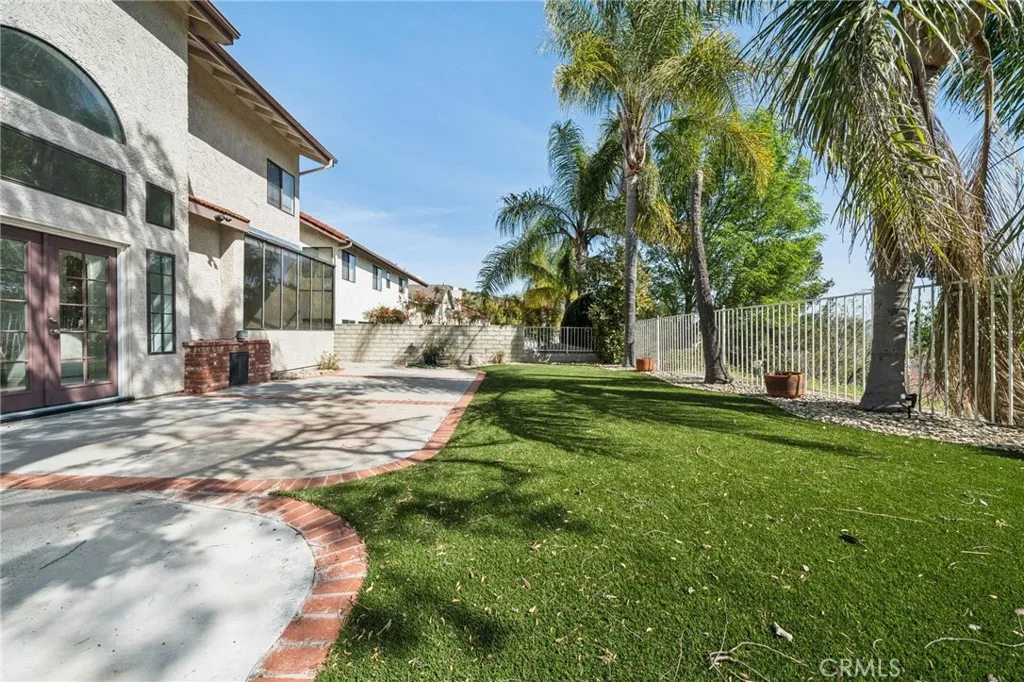 Welcome to 25308 Joyce Place, an elegant and beautifully maintained residence located in Stevenson Ranch, where timeless design meets everyday comfort. Offering 4 spacious bedrooms, 3 bathrooms, and approximately 2,584 square feet of thoughtfully designed living space, this impressive home sits on a view lot and features an attached three-car garage, providing both functionality and curb appeal. From the moment you step through the front door, you are greeted by a sense of openness and sophistication. Soaring ceilings, expansive windows, and polished tile flooring create a bright and welcoming atmosphere while allowing natural light to flow throughout the home. The thoughtfully designed layout offers both formal and casual living spaces, making it ideal for entertaining and everyday living. The formal living room provides an elegant setting for gatherings or quiet evenings, while the nearby dining space features double doors that lead directly to the backyard patio, creating an effortless transition between indoor and outdoor living. At the heart of the home is a beautifully designed kitchen that blends style and functionality. Crisp white cabinetry, modern appliances, and generous counter space provide both beauty and practicality, while the center island with breakfast bar seating creates a natural gathering place for family and guests. The kitchen opens to the inviting family room, where a warm fireplace serves as the perfect focal point for relaxing evenings or casual get-togethers. Adding to the home’s versatility is a main-level bedroom with its own private bathroom, ideal for overnight guests, extended family, or even a private home office. Upstairs, the home continues to impress with three additional bedrooms, each offering comfortable proportions and abundant natural light. The primary suite serves as a peaceful retreat, complete with vaulted ceilings and its own fireplace. The primary bathroom is designed for relaxation, featuring dual vanities, a soaking tub, and a separate shower. Step outside to the backyard patio, where there is space for outdoor dining, entertaining, or simply enjoying the Southern California sunshine. Additional highlights include a dedicated laundry room with extra storage and the practicality of a three-car garage. This home offers convenient access to highly regarded schools, Richard Rioux Park, shopping centers, dining, and entertainment. LOW HOA and NO MELLO ROOS.