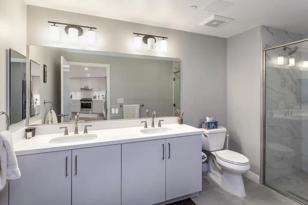 Welcome to 1048 Monroe #207! This beautifully designed 2019-built condo is in a prime, walkable Silicon Valley location. Ideally situated just minutes from Nvidia, Apple, Google, and Meta, and within walking distance to Santa Clara University and the Santa Clara Farmers Market. Santana Row and Westfield Valley Fair are both less than a 10 minute drive. This 1-bedroom condo features an open-concept layout with beautiful flooring and abundant natural light. The modern kitchen is equipped with a large island, stainless steel appliances, and ample storage, making it perfect for both daily living and entertaining. Additional highlights include a dedicated office nook, coat closet, and an oversized walk-in laundry room with a full-size Whirlpool washer and dryer. The spacious bathroom offers dual vanities and a large walk-in shower. Residents enjoy access to a fitness center, secured ButterflyMX entry, a secure mailroom, and two designated tandem underground parking spaces. Located on the second floor, the unit also provides direct access to a courtyard and BBQ area right outside your door. Don't miss this opportunity! This home comes partially furnished with a Rove Concepts couch, a dining table, bar stools, standing desk, and media stand for added convenience.