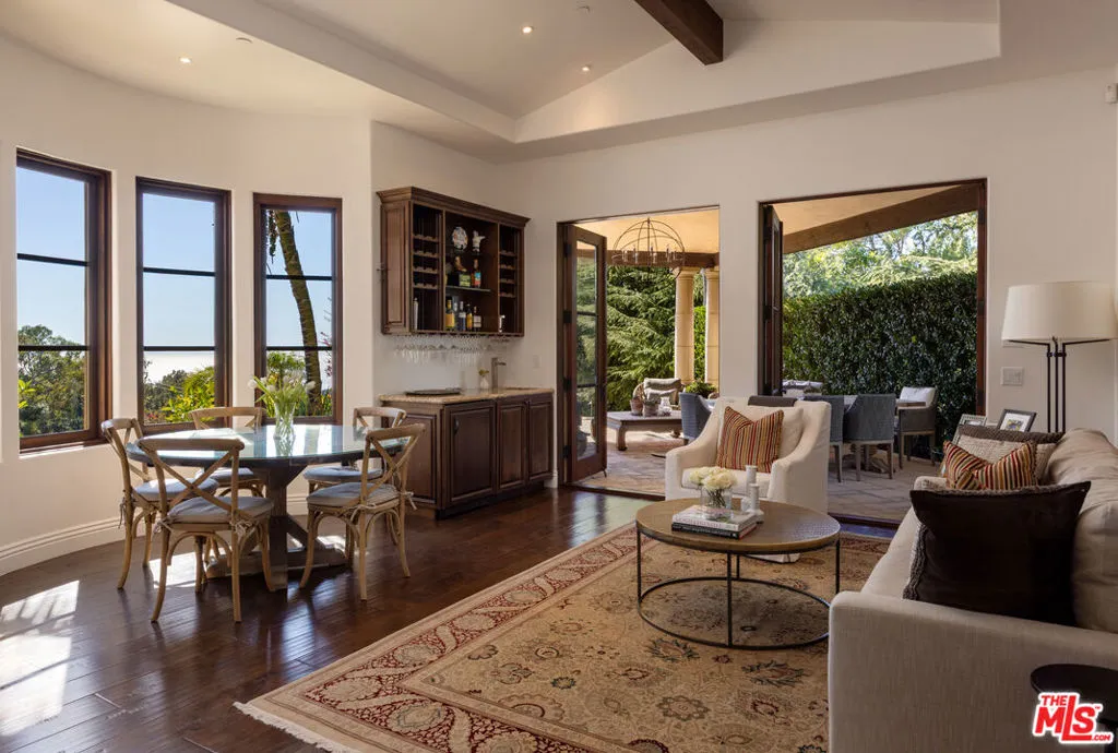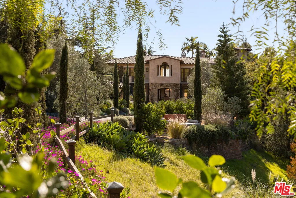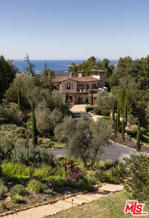 Perched at the end of a quiet lane and set on more than 2.25 acres, Villa Vista Bella is a breathtaking estate featuring two residences: a Tuscan-inspired main home and a newly remodeled guest house. Surrounded by sweeping views of the ocean, islands, harbor, and mountains, this gated compound offers extraordinary privacy, timeless architecture, and effortless indoor-outdoor living. The main residence spans nearly 7,400 square feet across two thoughtfully designed levels, featuring four spacious en-suite bedrooms, five full bathrooms, and two powder rooms. Rich architectural details bring warmth and character throughout the home, including vaulted ceilings with exposed beams, Brazilian walnut flooring, and limestone fireplaces, while expansive French doors frame the surrounding views. Upon entering, the home immediately reveals sweeping views of the ocean. Grand living and entertaining spaces are thoughtfully designed with a natural flow between rooms, creating a home that feels both elegant and highly livable. The gourmet kitchen, appointed with professional-grade appliances and refined finishes, opens seamlessly to the great room and breakfast area, while nearby doors lead to the covered loggia and terraces, creating an inviting setting for both everyday living and gatherings with family and friends. The spacious primary suite serves as a peaceful retreat with fireplace, ocean views, and a spa-like bath. Additional amenities include several flexible spaces currently configured as a private office with custom built-ins, theater room, wine cellar, and gym. Designed to embrace Santa Barbara's renowned indoor-outdoor lifestyle, the grounds feature expansive terraces, a covered loggia for al fresco dining, and an infinity-edge pool and spa overlooking the dramatic coastal and mountain vistas. The beautifully landscaped gardens, originally designed by Robert E. Truskowski, offer manicured lawns, mature plantings, and tranquil pathways throughout the property. Privately positioned on the grounds, a newly remodeled ~1,060 sq. ft. two-bedroom, 1.5-bath guest house offers a private retreat for visitors or extended family. The guest residence features open living spaces, a full kitchen, and an upper-level deck with spa enjoying picturesque views. Additional highlights include two garage structures with space for three cars, workshop space, a generous motor court, a separate art studio located behind the guest house, and a charming fountain courtyard that creates a welcoming arrival to the property. Exceptionally private and beautifully designed, Villa Vista Bella offers a rare opportunity to experience the very best of Montecito living, where sweeping views, elegant architecture, and effortless indoor-outdoor spaces come together in one remarkable estate.