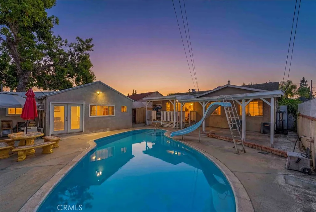 Welcome to this beautifully maintained 3-bedroom, 2-bath home offering comfort, style, and the perfect space to entertain! Featuring approximately 1,020 sq ft of living space on a spacious lot, this home is move-in ready and ideal for first-time buyers or growing families. Step inside to find a bright and inviting layout with tile and laminate flooring throughout, recessed lighting, crown molding, and upgraded windows, creating a modern and warm atmosphere. The true highlight of this home is the private backyard oasis, complete with a sparkling pool and rock waterfall feature—perfect for relaxing evenings, family gatherings, and entertaining guests. The yard is gated for added privacy and security, offering a peaceful retreat right at home. Additional features include a converted garage with its own bathroom, providing extra flexibility for guests, a home office, or potential rental income. Prime Location: Conveniently located near the 605 & 60 freeways, making commuting a breeze. Enjoy close proximity to: Local shopping centers & dining options Parks and recreational areas Schools within the El Rancho Unified School District Short drive to Whittier, Downey, and surrounding cities This home offers the perfect combination of comfort, convenience, and backyard luxury—don’t miss the opportunity to make it yours!