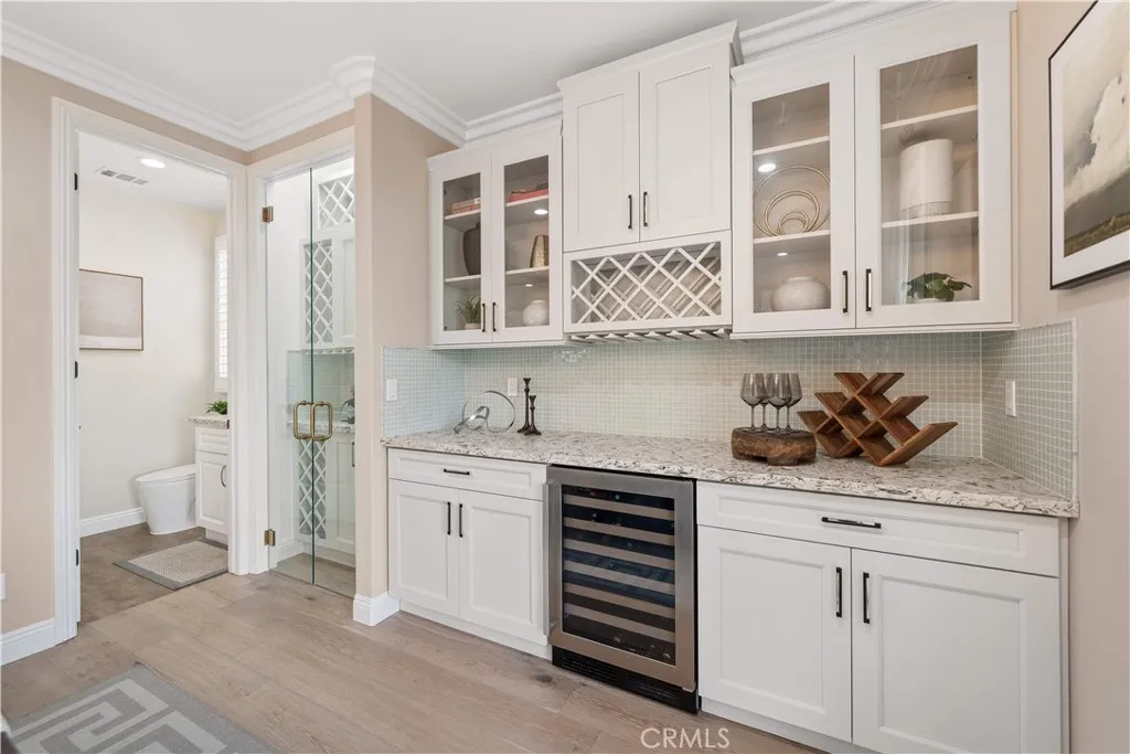 Premier Custom Residence in University Park | Rare Newer Construction in South Irvine Location Located in the highly sought-after University Park community in South Irvine, this extensively upgraded custom residence offers a rare opportunity to own a newer home in one of Irvine’s most established neighborhoods. Built in 2022, the home features quality craftsmanship, thoughtful design, and refined finishes throughout. A well-designed floor plan welcomes you inside. The main level includes two en-suite bedrooms with private entrances—ideal for multi-generational living or guests—along with a dedicated office and powder room. Interior highlights include a curved wrought-iron staircase, designer chandelier, and hardwood flooring throughout the first floor. The open-concept great room features expansive sliding glass doors that seamlessly connect indoor and outdoor living. The gourmet kitchen is equipped with glass display cabinetry, KitchenAid appliances, marble countertops, and a walk-in pantry. The dining area is surrounded by sliding glass doors and complemented by a wine refrigerator and storage. Upstairs, a spacious loft connects to a custom home theater, creating a flexible entertainment space. Four en-suite bedrooms are well-separated for privacy, including two primary suites: The primary suite 1 features double-door entry, dual vanities, a soaking tub, huge walk-in shower, and his-and-her walk-in closets with marble flooring. The primary suite 2 offers a private balcony and a multi-head shower for a spa-like experience.Two additional bedrooms are generously sized with highly upgraded bathrooms. The backyard is featuring a large California Room with built-in BBQ, refrigerator, and ventilation hood, plus a putting green. The flat, generously sized yard is a rare find in South Irvine. Additional features include fully paid solar, epoxy-coated garage flooring, natural stone hardscape in front and back yard, speakers , and a security system with surveillance cameras and alarm. Located in the award-winning University High School district and minutes from TVT. Walking distance to University Park Elementary, shopping and supermarket. Convenient access to UCI, golf courses, Newport Beach and major retail centers. Community amenities include pools, spa, tennis courts and sports fields.