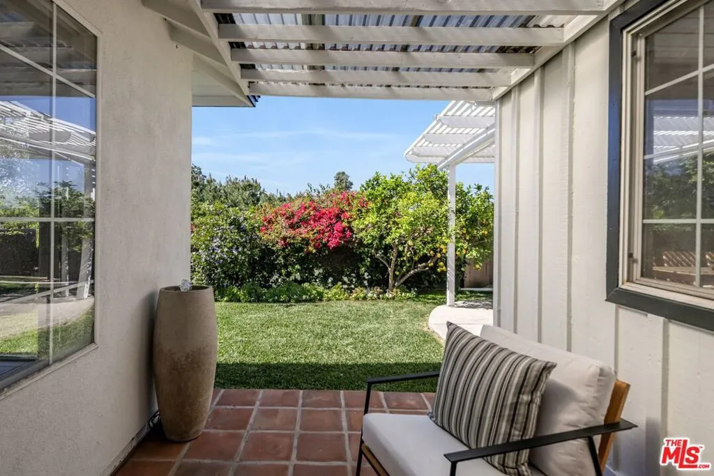Nestled in the highly sought-after Lower Hastings Ranch neighborhood of Pasadena, this beautifully updated traditional home sits on an oversized lot with sweeping skyline views and exceptional southern exposure. A light-filled living room welcomes you with rich hardwood floors, elegant plantation shutters, and a seamless flow into the dining area, where doors open to a charming veranda perfect for indoor-outdoor living. The refreshed eat-in kitchen features stainless steel appliances, including a gas range, hood, and refrigerator, along with a pass-through window to the family room that enhances both function and connection. The private bedroom wing offers a classic layout with three spacious bedrooms, two bathrooms, and ample storage, including dual linen closets. On the opposite side of the home, a versatile fourth room provides the perfect space for a home office, studio, or potential fourth bedroom. Step outside to a serene backyard retreat where the kitchen, dining, and office spaces all open to lush grassy grounds, drought-tolerant landscaping, vibrant plantings, and a mature, fruit-bearing lemon tree. A custom mini sport court adds a fun and unique touch ideal for bocce ball, corn hole, or casual entertaining. Enjoy expansive views of eastern Pasadena beneath a bright southern sky that fills the property with natural light throughout the day. The oversized lot extends way beyond the rear fence, offering exceptional potential for a pool, ADU, or future expansion!