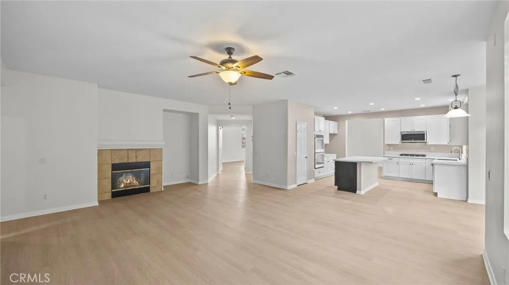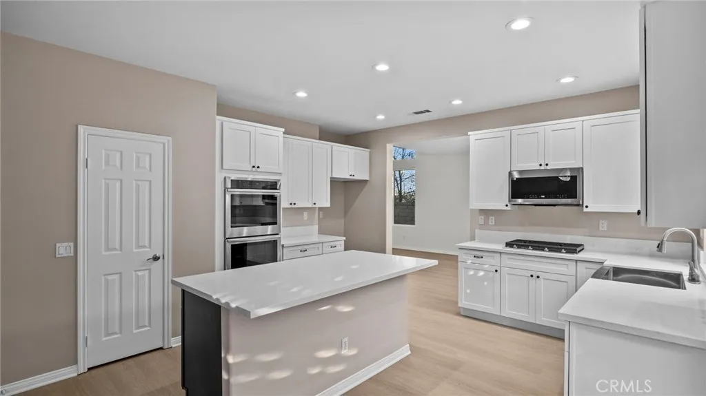 This beautifully updated home features high-volume ceilings and a dream kitchen with all new stainless appliances with wi-fi connectivity, white cabinetry, walk-in pantry, and spacious living and dining areas. The entire home boasts all new interior and exterior paint , plus new flooring throughout. Offering 4 bedrooms 2.75 baths, with a serene retreat off the primary bedroom, featuring a dual sided fireplace shared with the primary bedroom. Oversized primary bath with a jetted tub, separate shower and a huge walk in closet. Downstairs bath has been refreshed with a new vanity, mirror and shower doors, inside laundry. Private outdoor oasis with rock pool ,spa, built in barbecue and no back neighbors, offers the perfect retreat. Plus, you'll be conveniently located near Wilson Elementary School, top restaurants, and the Dos Lagos and The Crossings shopping centers -everything you need just minutes away!