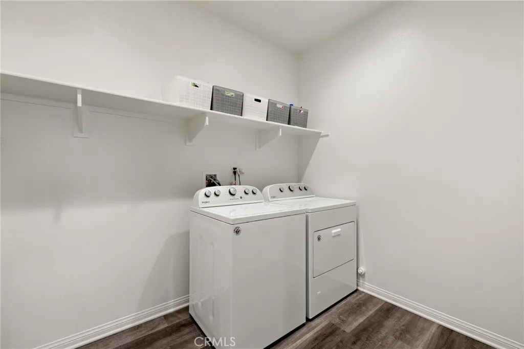 Unobstructed Mountain views, no rear neighbors, owned solar, single story and sitting above a private community walking trail; run, don't walk, this home is not going to last! Welcome home to Saddle Ranch Pl, a stunning 2300 sqft single story property offering 3 bedrooms, an office (potential 4th), 2.5 baths, a two-car garage and an open concept floor plan, in the highly sought after community of Audie Murphy Ranch in Menifee. As you enter the home you are greeted by tall ceilings, custom paint, recessed lighting, LVP floors, high baseboards and custom window coverings throughout. Right off the entrance are the two secondary bedrooms offering LVP floors, walk-in closets, and tons of natural light flooding the rooms. They share a secondary bath featuring dual sinks, quartz counters with a shower tub combo. The extra-large office is a great flex space or an optional 4th bedroom. Across the hall is the laundry room and the perfect place to add built-in cabinets. The two-car garage boasts tons of extra storage. The home also offers two whole house quiet cool systems perfect for hot summer nights. The grand Great Room greets you with Mountain views out large windows that flood the home with natural light, recessed lighting, and a gas fireplace with mantel. The chef’s kitchen features pewter appliances, herringbone backsplash, quartz counters with an extra-long eat up island, soft close cabinets, a hood, double oven, extra cabinets and counter space for more storage, electrical for pendant lights and a massive walk-in pantry. Just off the Great Room is the large dining area with electrical for a chandelier already in place. Off the living space is the oversize primary bedroom offering Mountain views, LVP floors, and an attached bath, featuring a black framed shower, soaking tub, dual vanity with quartz counters, and a large walk-in closet. The private oasis boasts a California Room, lush grass, a built-in BBQ with island for entertaining and a custom natural gas fire pit that overlooks the unobstructed mountain views. The community offers pools, spa, sports courts, hiking and biking trails, a clubhouse and skate park. The community boasts the award winning Taawila elementary school and the brand-new Kathryn Newport middle school. The home is located between the 15 and 215 freeways, minutes to shopping including Sprouts, Target, Barrons, Nothing Bundt Cakes, many restaurants, and is 30 minutes from the Temecula wineries. This is a home you do not want to miss!
