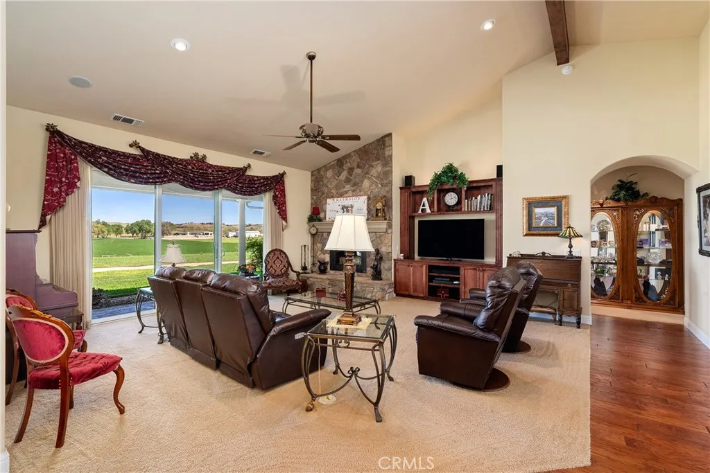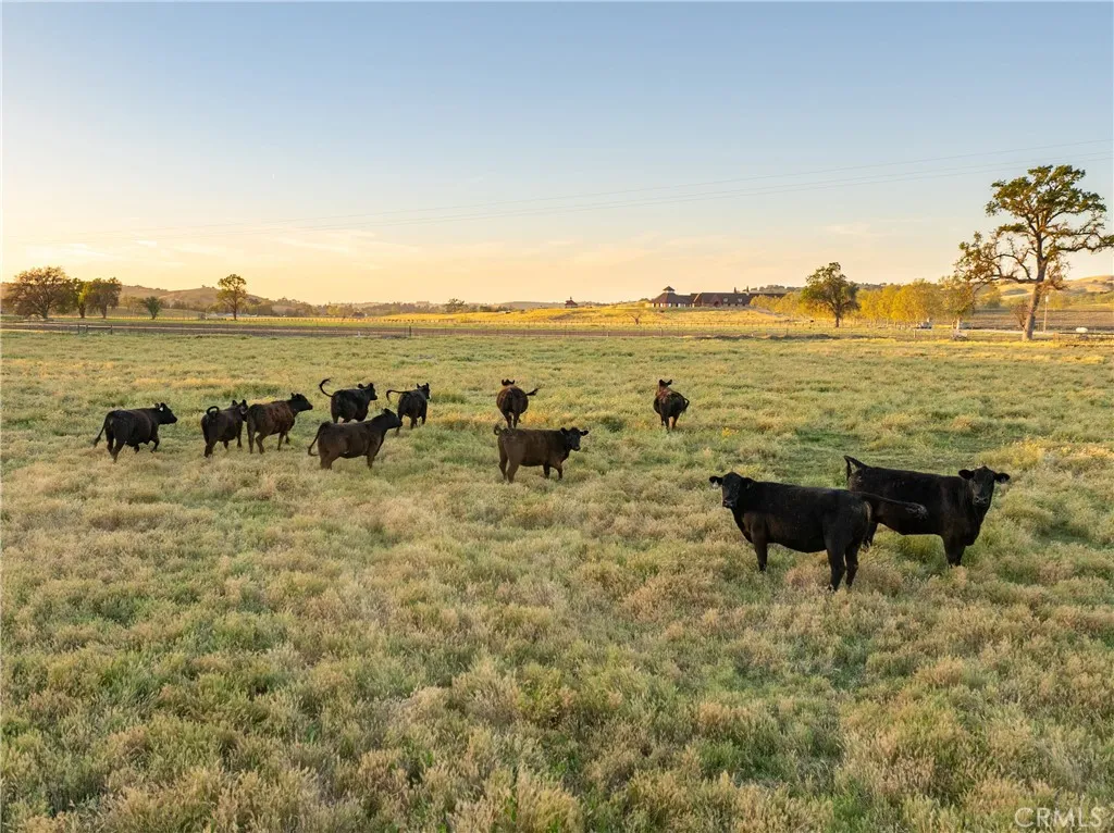 Located on the corner of Camp 8 Road & Creston Road, 5375 & 5385 Camp 8 offers 82 usable acres w/ panoramic farm & vineyard views, 2 beautiful homes, agricultural infrastructure, & exceptional versatility, all just 15 minutes from downtown Paso Robles. The property includes approximately 35 acres currently planted in irrigated alfalfa, supported by a large producing agricultural well. Additional pastures are set up for equestrian use & cattle grazing w/ hot wire fencing & feeders, while the open terrain also provides excellent potential for an equestrian arena or expanded facilities. The property benefits from lower property taxes under the Williamson Act. The 1st of 2 gated main residences offers 2,830± sq ft of Tuscan-inspired design w/ soaring ceilings & welcoming living spaces. The kitchen showcases granite countertops & stainless steel Bosch appliances, opening to comfortable gathering areas designed for both daily living & entertaining. The home includes formal dining, grand fireplace in the living room, 3 bedrooms, 2 & a 1/2 bathrooms, an office, & a wine room. An oversized 3-car garage adds convenience & features a built-in dog washing station. Outdoor living is centered around a lush lawn, covered patio, & spa, creating a relaxing setting to enjoy the surrounding countryside. Nearby, the impressive 36 x 36 party barn offers outstanding space for gatherings & events. You'll also find a nearby chicken coop! The 2nd residence offers approximately 1,600± square feet w/ 3 bedrooms, 2 bathrooms, high ceilings, an open floor plan, LVP flooring, & a bright sunroom. Outside you'll find a private patio & lawn along w/ a five-car garage. Equestrian amenities include a 6-stall barn w/ tack room, hay storage, pipe fencing, turnouts, & pastures. The land ranges from flat to gently rolling terrain dotted w/ mature oak trees. Per San Luis Obispo county planning, the property allows for up to three 1,200 sq ft ADUs too. Schedule your showing today!