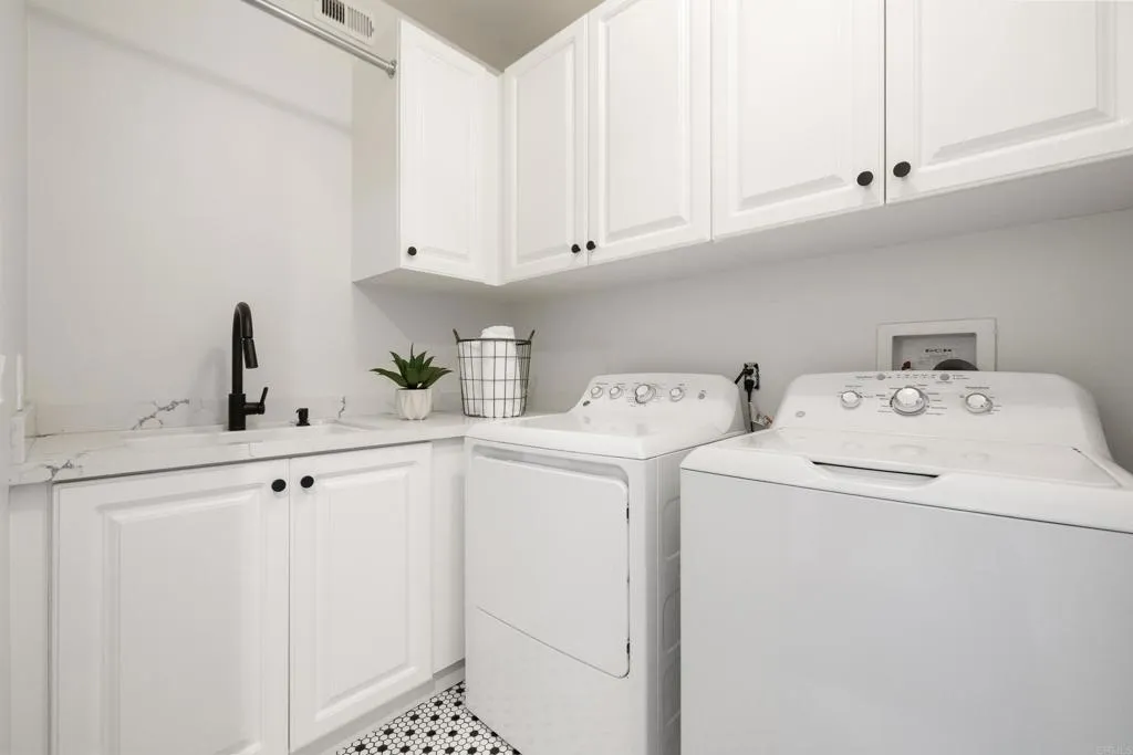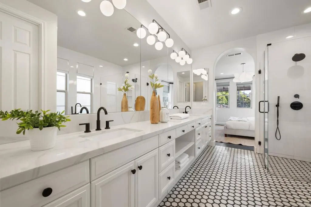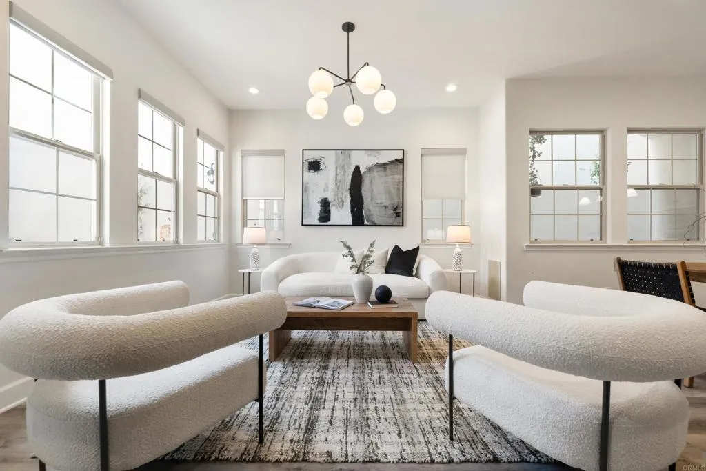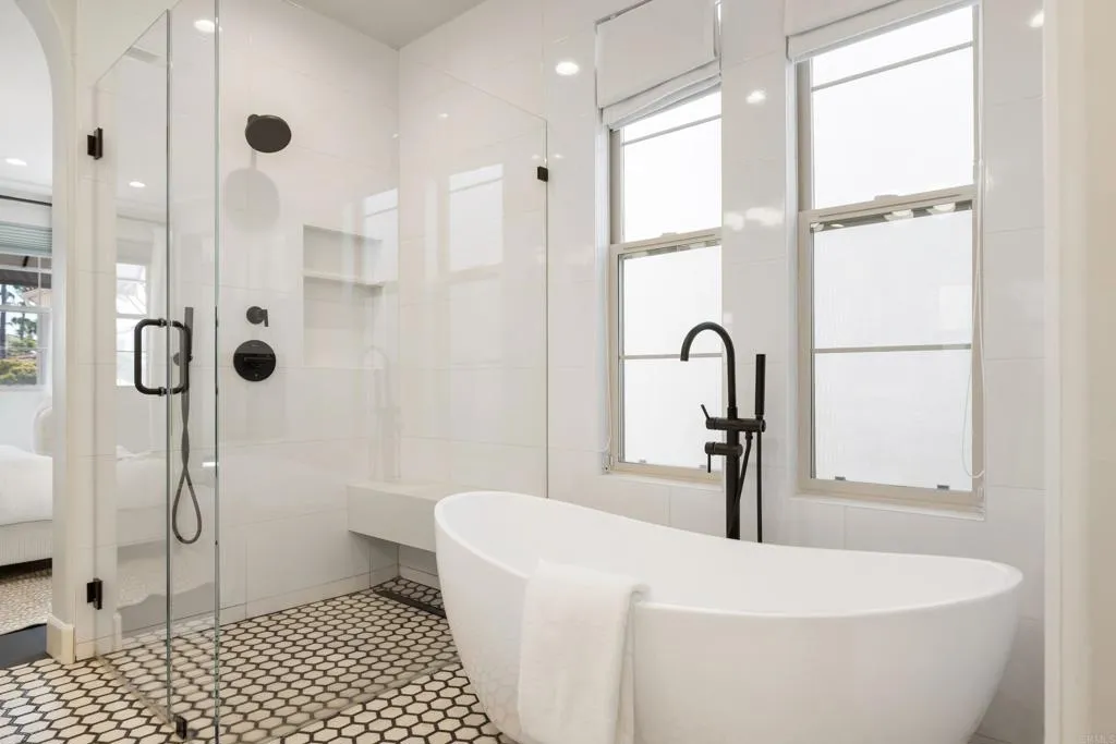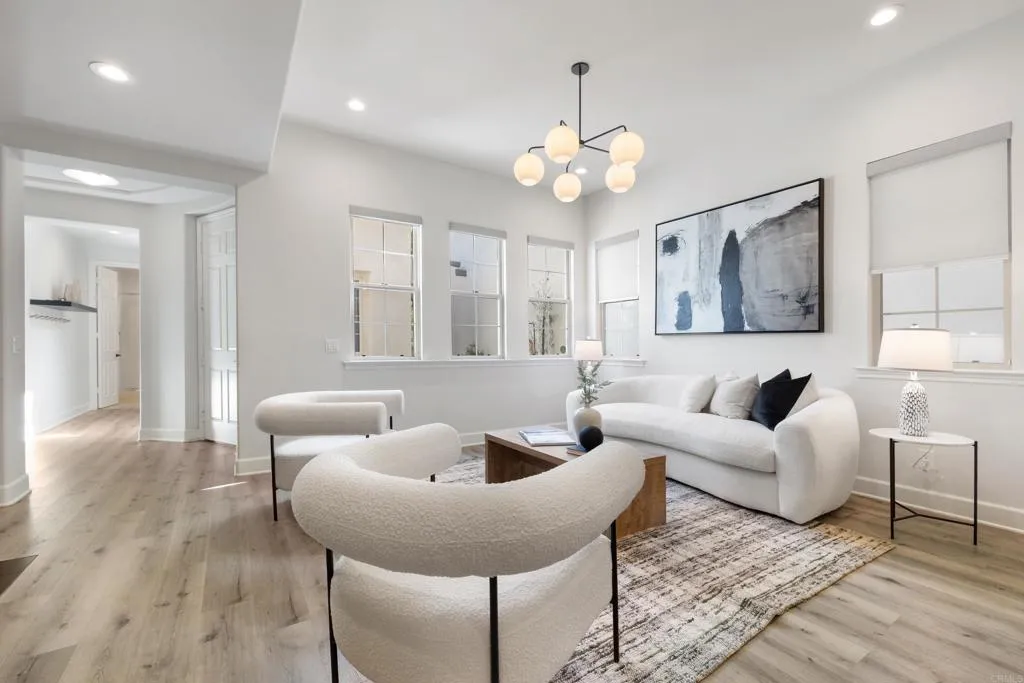 Beautifully remodeled Beacons Point in Liberty Station offers the perfect blend of modern finishes, functional layout, and charming Point Loma living. The open-concept floor plan seamlessly connects the living, dining, and kitchen areas—ideal for entertaining and everyday living. The beautifully renovated kitchen showcases quartz countertops and stainless steel appliances, all complemented by new flooring and designer fixtures, as well as updated bathrooms with contemporary finishes. Upstairs, the primary suite is a true spa-like retreat, complete with a soaking tub, glass-enclosed walk-in shower, dual walk-in closets, and a retreat area with Juliet balcony. A secondary upstairs bedroom and a convenient laundry room add to the home’s thoughtful layout. Downstairs bedroom offers a French door connection to the front patio, creating a unique indoor/outdoor flow for the downstairs living. Outdoor spaces shine with an entertainer’s courtyard featuring Trex decking and a gas fire pit, while the expanded front patio offers additional room to relax and enjoy the charm of Beacons Point. Additional features include a tankless water heater, and a 2-car garage with epoxy flooring and overhead storage racks. Ideally located in the heart of Liberty Station, just moments from parks, waterfront paths, top dining, shopping, Trader Joe’s, and Vons—this home captures the very best of Point Loma living.