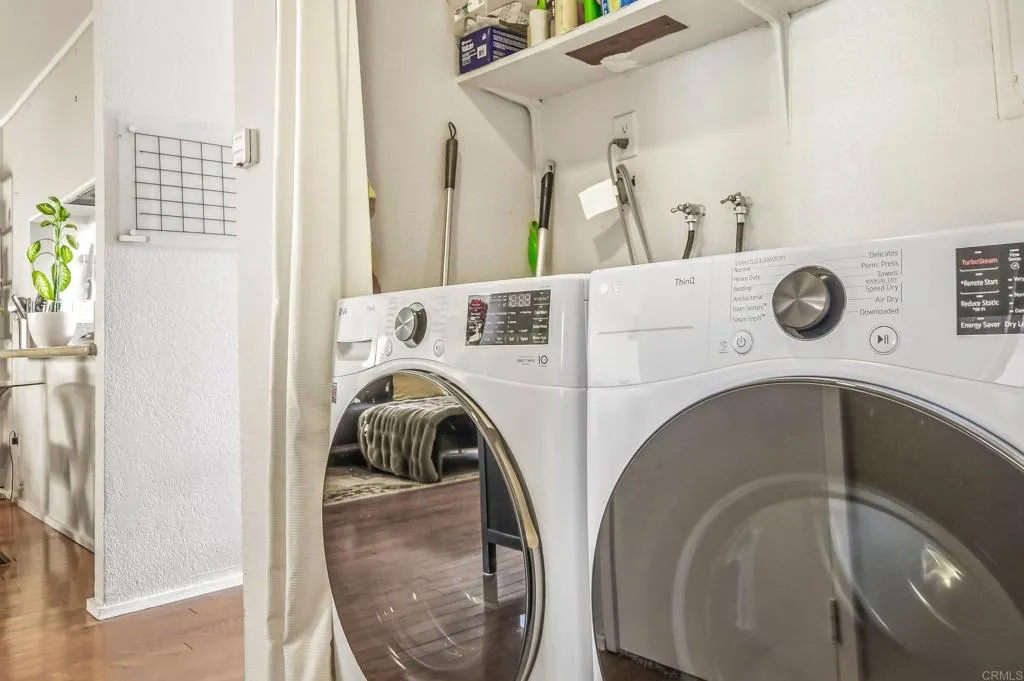 This is the move-in ready 2 bedroom/2 bath end unit that you've been waiting for! VA approved condo that is guaranteed to impress with two primary suites with their own bathroom, laundry in unit, garage, and a pet-friendly HOA at $264 a month. This condo built in 2000 checks off all of the must haves! You'll love the bright living room with crown molding throughout and a cozy fireplace to warm up by on cold nights. The kitchen is loaded with stainless steel appliances, a 5 burner gas range, and ample cabinet space. Stay cool all Summer long with the energy efficient mini splits in the living room and primary or open up the front door and balcony for some fresh air flow. Enjoy BBQ's and the stunning San Diego sunsets from the privacy of your balcony after a long day. Conveniently located near La Mesa Village, Costco, and great schools. Nature enthusiasts will love having gems like the La Mesa Secret Stairs, Mt Helix, Lake Murray, and Cowles Mountain only a hop and a skip away and about a 20 minute drive from San Diego's iconic beaches. This condo is a must see, make sure to check out the walk through video tour. Call today to schedule a showing!