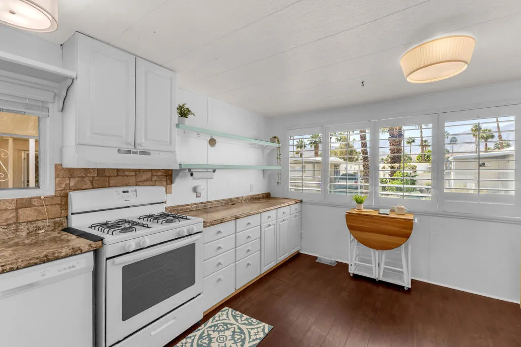 Welcome to resort-style living in the desirable Royal Palms community of Cathedral City! This charming 2-bedroom, 1-bath manufactured home offers the perfect blend of comfort, convenience, and breathtaking natural beauty, all at an affordable price point. Step inside and be welcomed by a large, open kitchen designed for both functionality and gathering, complete with a generous pantry to keep your home organized and stocked. The open layout flows naturally, making everyday living feel spacious and relaxed.The real showstopper? Stunning west-facing mountain views that paint the sky in vivid desert color every evening, your own private sunset show from the comfort of home. Extend your living space outdoors onto the rear patio deck, the ideal spot to unwind, entertain, or simply soak in the warm desert air. Additional highlights include inside laundry for ultimate convenience and a covered carport to protect your vehicle from the desert sun.Beyond your front door, Royal Palms is a vibrant 55+ community that delivers an exceptional lifestyle with resort-caliber amenities including a clubhouse, pool, and a welcoming neighborhood atmosphere, everything you need to live your best desert life. Whether you are looking to simplify without sacrificing style or searching for the perfect active adult retreat