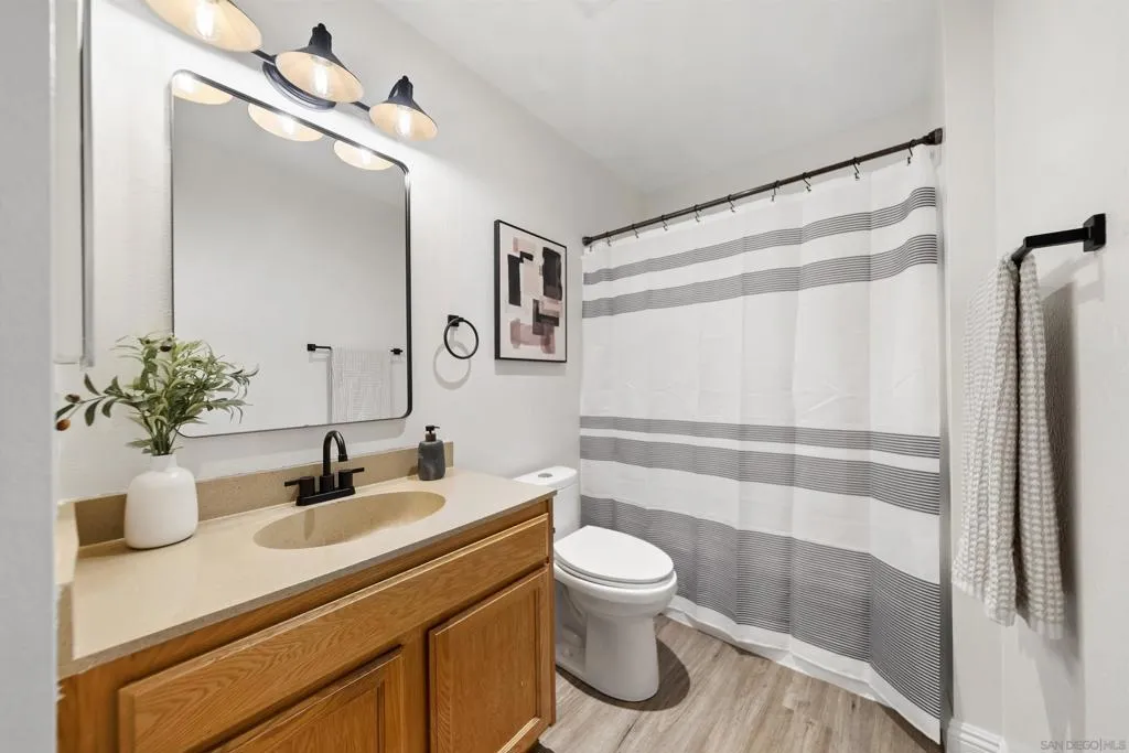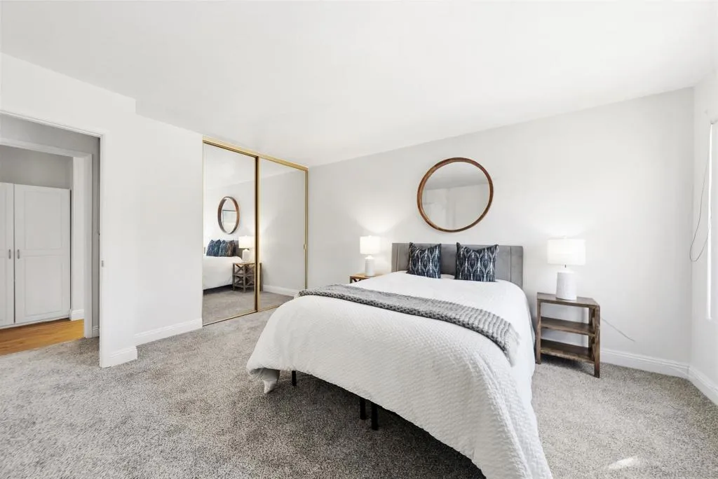 Welcome to one of the best-located units in Rancho Mission Villas in the heart of Mission Valley! This beautifully maintained top-floor 1BR/1BA condo offers added privacy with no one above and a bright, open feel throughout. The home features fresh interior paint, brand new carpet, and stylish LVP flooring in the bathroom. Enjoy your own private patio with peaceful hillside views—perfect for relaxing or entertaining—plus convenient exterior storage. Ideally situated just steps from the trolley, 24 Hour Fitness, and the community dog run, with easy access to shopping, dining, and Snapdragon Stadium. Residents enjoy resort-style amenities including multiple pools and spas, sauna, fitness center, tennis courts, BBQ areas, clubhouse, and more. VA approved complex with assigned parking right in front of the unit and ample guest parking available.