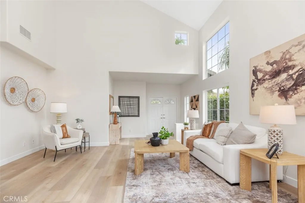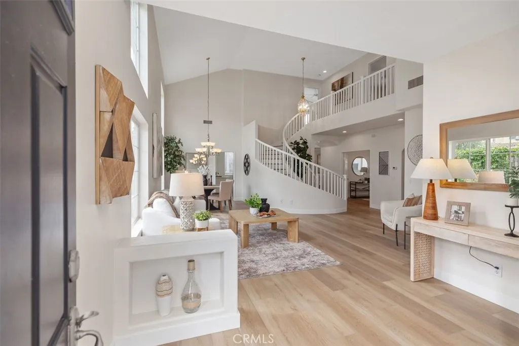 Welcome to 25036 Footpath Lane—an upgraded corner-lot home in the guard-gated community of San Joaquin Hills, just steps from the neighborhood park and picnic area. This move-in-ready residence offers 5 bedrooms, 3 bathrooms, and approximately 2,718 square feet of bright, open living space designed for today’s lifestyle. The fully renovated kitchen is a standout, featuring white quartz countertops with full backsplash, refinished cabinetry, and brand-new top-of-the-line appliances—all seamlessly connected to the family room for effortless entertaining. A highly sought-after main-floor bedroom with custom closet and full bath provides ideal flexibility for guests or multi-generational living. Upstairs, dual primary suites elevate the layout, including a spacious main suite with a private bath and sleek glass shower enclosure. An oversized bonus room offers versatility as a fifth bedroom, office, or media space. Extensive upgrades include luxury vinyl flooring throughout, full interior repaint including doors and cabinetry, new baseboards and molding, updated bathroom vanities, exterior repaint, repipe, leased solar, and professionally refreshed landscaping with synthetic turf and new sod. Located within a secure, amenity-rich community and close to top-rated schools, beaches, resorts, shopping, dining, and major commuter routes—this is a rare opportunity to own a turnkey home in one of Laguna Niguel’s most desirable neighborhoods.