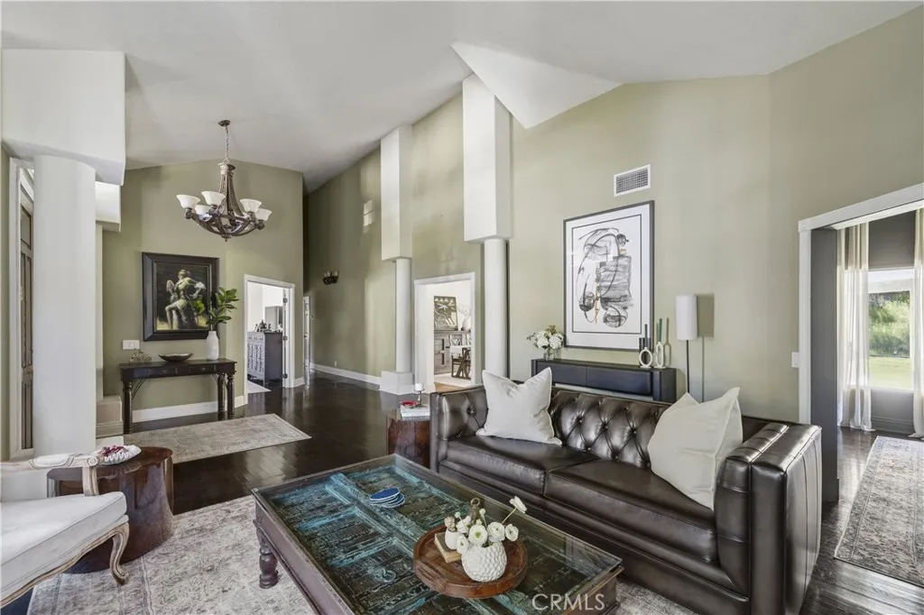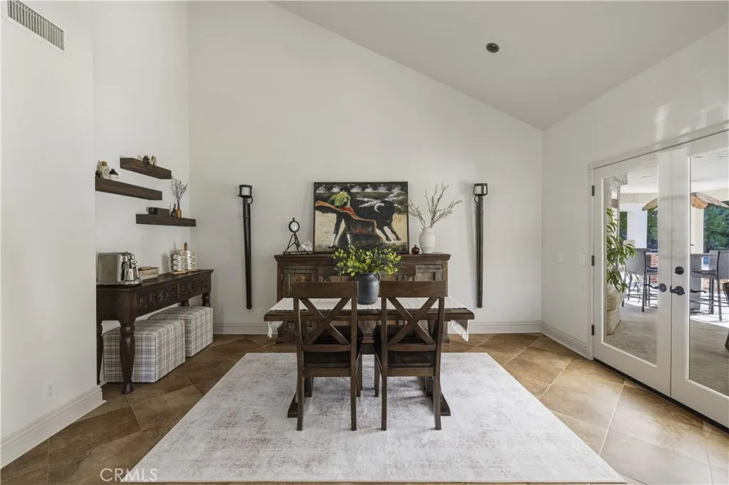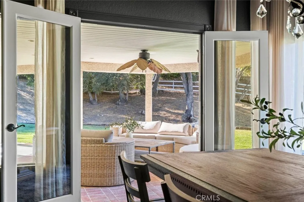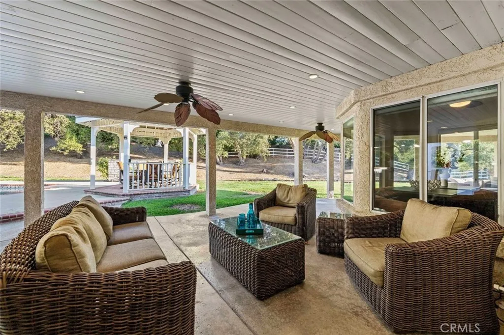 Welcome to one of the most desirable streets in all of Sand Canyon, located on a flat cul de sac within the sought after Crystal Springs Ranch community. Set on nearly one acre, this single story estate offers approximately 2,900 square feet with four bedrooms including a den that can easily function as a fourth bedroom, three full bathrooms, and a layout designed for both everyday living and entertaining. The home is filled with natural light and features high ceilings, wood floors, French doors, and three fireplaces that create a warm and inviting atmosphere. The refreshed kitchen serves as the heart of the home and has been thoughtfully arranged to create a spacious eat in gathering area, featuring stainless steel appliances, double ovens, granite countertops, a large center island with bar seating, a hammered copper farmhouse sink, bronze fixtures, and a charming breakfast nook with custom built in seating. The built in banquet seating includes hidden storage beneath the seats, adding both character and functionality. At the front of the home, the main living room offers an inviting space for relaxing or entertaining. Between two secondary bedrooms is a versatile flex space ideal for a study, work area, or lounge, with those bedrooms sharing a Jack and Jill bathroom, while the current den can easily function as a fourth bedroom and connects to a full bathroom, providing flexibility for guests, a home office, or multi generational living. The primary suite offers a retreat like setting with a door to the backyard and a spa inspired bathroom featuring custom cabinetry, elegant vanities, glass block details, a handcrafted hammered copper soaking tub, and a hidden walk in closet. The backyard creates a private entertainer’s setting with a sparkling pool and spa, full outdoor kitchen with built in barbecue and sink, permanent gazebo, and a large wraparound covered patio with ceiling fans that stretches nearly the length of the home, surrounded by mature oak trees and natural surroundings. Additional features include a three car garage, indoor laundry room, and space for potential RV parking. Crystal Springs Ranch offers a peaceful setting with a low HOA of approximately $150 per year and no Mello Roos while still being just minutes from shopping, dining, and freeway access in Santa Clarita.