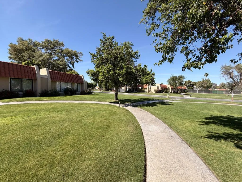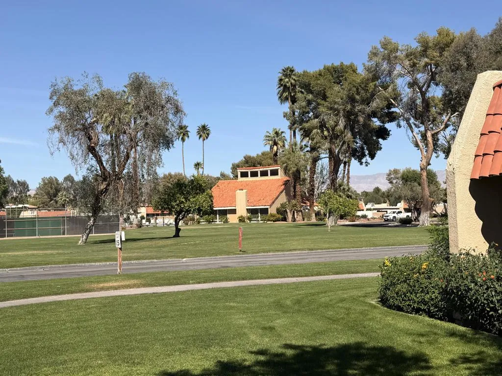 Coming Soon! Amazing property in Mountain View Villas. Perfect for singles, couples, or families, this inviting condo is ideally located near the pools, clubhouse, pickleball courts, and convenient parking, allowing you to fully enjoy the beauty and relaxed lifestyle of this wonderful community. This clean, two-bedroom, two-bath condo is located in the heart of Mountain View Villas in Rancho Mirage, offering a peaceful setting surrounded by beautifully maintained, park-like grounds. Mountain View Villas is a gated community known for its exceptional amenities, including five pools, four spas, seven lighted pickleball courts, three lighted tennis courts, and a welcoming clubhouse designed for relaxation and social gatherings. The home features indoor laundry, a private patio accessible from both the living room and the primary bedroom, and covered parking conveniently located just outside the patio. HOA dues include cable TV, internet, and trash service, providing added value and convenience. Ideally situated near shopping, dining, and entertainment, and just minutes from the exciting new Cotino Disney community, this property offers comfort, convenience, and the best of desert living in Rancho Mirage. Discover the charm and serenity of Mountain View Villas, a true hidden gem in the Coachella Valley. Please call for rental restrictions. The property is on leased land with a private lessor. A lease buyout option is available for $175,000 in addition to the purchase price. Please call to inquire. Professional photos coming soon.