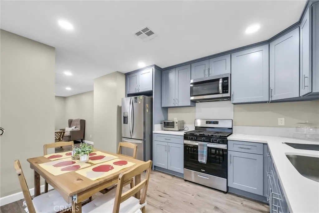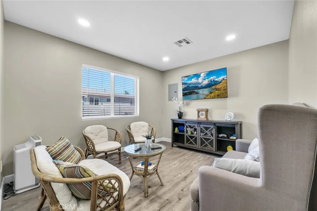 Turnkey home with a newer detached ADU and additional studio conversion, offering excellent flexibility and income potential. Per assessor, the property is a 4-bedroom, 2-bath home, with the main residence and ADU each configured as 2-bedroom, 1-bath units. This property can comfortably house 2 families. Both units are outfitted with all energy efficient lighting and appliances. The detached ADU, built approximately 2.5 years ago, features a private entrance, full kitchen, and laundry hookups, providing a fully independent living space. The garage has been converted into a studio with a kitchenette and bathroom, offering additional functional space for extended living or potential rental use. Situated on a large lot, the property offers RV parking and ample space for multiple vehicles. The grounds are fully enclosed with block walls and gated access for added privacy. Both the main home and ADU are equipped with newer AC units. The front home also features a newer roof. Low-maintenance, drought-tolerant landscaping enhances overall efficiency and curb appeal. Ideal for owner-occupants or investors seeking a versatile property with multiple living spaces and strong income potential.