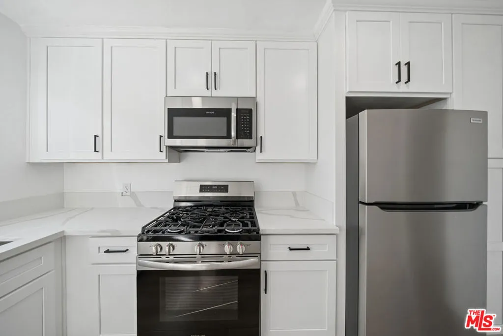 Beautifully renovated top-floor 1-bedroom residence in the Koreatown Hancock Park area offering abundant natural light, updated finishes, and city views. This upgraded unit features new flooring, recessed lighting, a modern kitchen with stainless steel appliances, and generous storage including two closets plus a hallway linen closet. The bathroom has been updated with fresh tilework and contemporary fixtures. Amenities include onsite laundry, controlled access, one covered parking space, and an onsite manager. Pets allowed with owner approval. Tenant pays electric, gas, water, and trash via RUBS. Located close to major markets, restaurants, cafs, Larchmont Village, and easy transit access. Square footage is approximate and not verified.