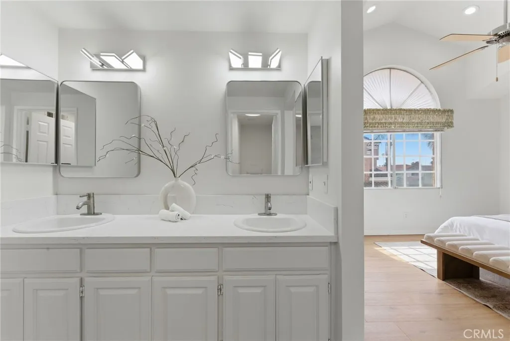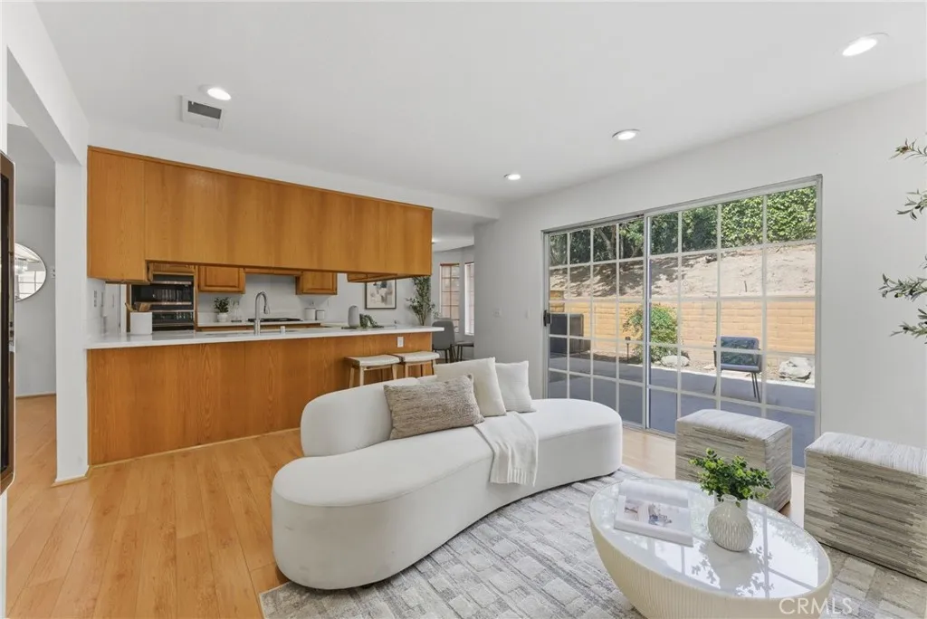 ABC School District + Cerritos + Gated Community = Opportunity This freshly painted townhome offers a bright, open floor plan with soaring ceilings and abundant natural light throughout. The formal living and dining areas create a spacious setting for both everyday living and entertaining. The kitchen features quartz countertops, a new beverage fridge, ample cabinetry, breakfast nook, and a seating bar, opening seamlessly to the family room with fireplace and direct access to the private patio—ideal for indoor-outdoor living. Upstairs, the primary suite features high ceilings, generous space, and an en-suite bathroom. Bathrooms throughout the home have been recently upgraded, adding a fresh and modern touch. Two additional bedrooms offer flexibility for guests, home office, or gym. Interior features include laminate wood flooring, recessed lighting, and large windows throughout. Additional highlights include a 2-car attached garage with direct access, laundry hook-ups with additional storage, and access to community amenities including pool and spa. Conveniently located near the Cerritos Library, Cerritos Mall, variety of dining options, and close to the 605 and 91 FWY. This home presents a rare opportunity to own in a gated Cerritos community within the highly sought-after ABC Unified School District.