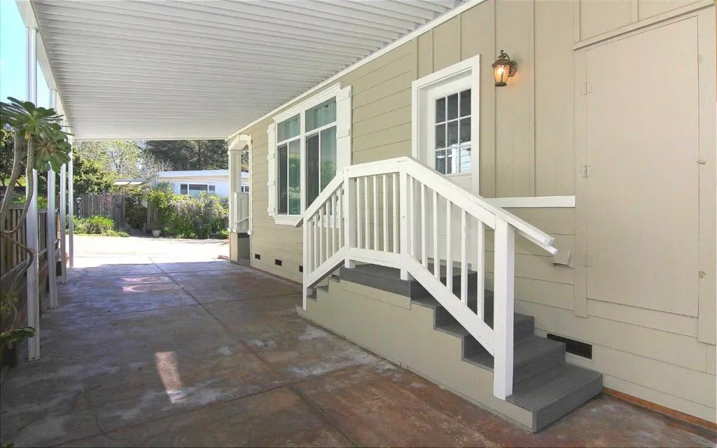 This is the Taj Mahal of manufactured homes. Built as the model home by Alliance Manufactured Homes, this flagship was spared no expense in custom details, w/all the bells & whistles you could ever want. Showcasing an expansive 1,800 sq ft, of beautifully appointed, 3 spacious sized bdrms w/ample closet space, 2 full BA, + an abundance of elegant & impressive features throughout. In addition to the incredible features, is the premier location w/in Rodeo Estates Park, at the end of Hilltop, a road less traveled, adjacent the gorgeous Soquel hill countryside w/views. The beautifully appointed primary suite is a true retreat, boasting his & hers graciously sized walk-in closets & a bthrm, that feels like a luxurious day at the spa. Then there's the kitchen...if you like to cook & entertain, you will be delighted by the space w/an abundance of stylish shaker cabinetry, ample granite countertops, gorgeous appliances, & if you don't like to cook, its still striking to look at! Within every inch, you'll find high end, custom features from the elevated tray ceilings, crown molding, bull nose edges & walls of floor to ceiling dual pane windows, allowing an abundance of natural light throughout. Every inch of space was thoughtfully designed in an inviting floor plan. Rare offering indeed.