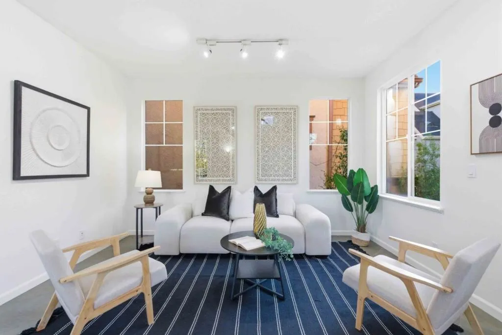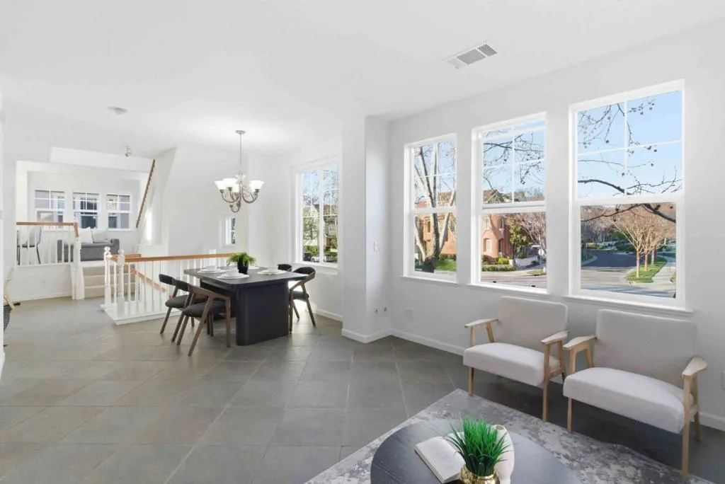 Welcome to this charming home located in the vibrant city of Santa Clara. This spacious residence offers 1,590 sq ft of comfortable living space, featuring three bedrooms and three full bathrooms. Positioned within the Santa Clara Unified School District, it is a practical choice for families. The kitchen is a chef's delight, boasting a range of modern appliances including a gas cooktop, built-in oven, microwave, and refrigerator, complemented by an island and a convenient 220-volt outlet. The kitchen seamlessly flows into the family room, creating an inviting atmosphere for gatherings. Enjoy meals in the dining area, which features a breakfast bar and additional dining space in the living room. The home is equipped with central AC and features diverse flooring options like carpet, slate, tile, and wood. Relax by the fireplace or enjoy the high ceilings and walk-in closet, adding to the homes appeal. The laundry area is conveniently located in the utility room and includes a washer and dryer. A community pool and a two-car garage round out the amenities.