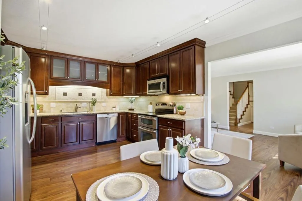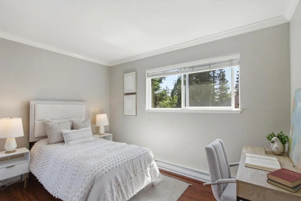 Tucked away in a quiet location set far back from Rengstorff Avenue, this rarely available four-bedroom end-unit condo offers incredible space and value in Mountain View. With thoughtful upgrades throughout, the home features a beautifully kitchen with granite countertops and a spacious eat-in area, perfect for gatherings. The versatile floor plan includes three bedrooms upstairs plus a main-level bedroom ideal for a home office, guest suite, or den. Enjoy the comfort of two levels of living with abundant natural light and privacy. A dedicated in-unit washer and dryer provide everyday convenience. Ideally located just minutes from Google and other major tech employers, this home offers unbeatable access to the region's innovation hub. Enjoy close proximity to shopping, dining, parks, and major commute routes, making daily life effortless. A fantastic opportunity to own in one of Silicon Valley's most desirable and centrally located communities.