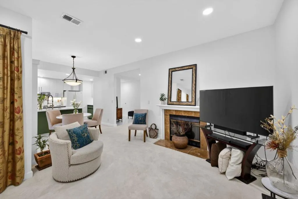 Beautifully updated 2-bedroom, 2-bath ground-floor unit condo in a desirable community. Bright, open-concept layout with abundant natural light through upgraded Andersen windows. The fully remodeled kitchen features quartz countertops with full backsplash, custom two-tone maple cabinetry with soft-close doors, pull-outs, under-cabinet lighting, and stainless steel appliances. Spacious living area with fireplace flows seamlessly to dining and private patio perfect for indoor-outdoor living. Both bathrooms are tastefully updated with quartz vanities and modern finishes. Additional upgrades include engineered flooring, new baseboards, textured walls/ceilings, updated electrical panel, and newer water heater. Includes detached garage with insulated roll-up door plus one permitted parking space. Community amenities include a pool. Ideally located near Townsend Park, featuring a playground and tennis courts, and just minutes from popular shopping destinations like H Mart, 99 Ranch Market, and Costco. With easy access to Berryessa BART Station and major freeways, this home offers the perfect blend of style, comfort, and convenience.